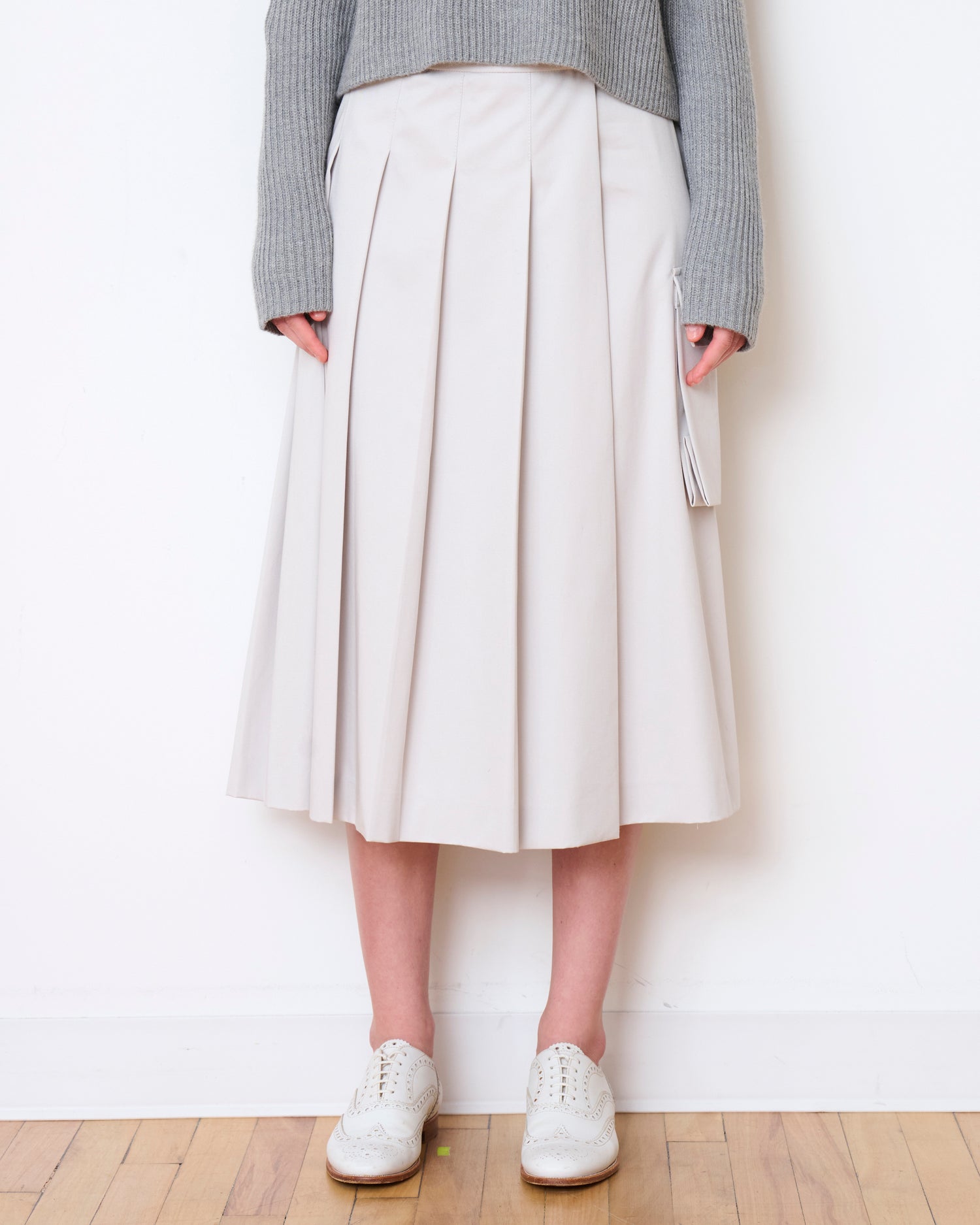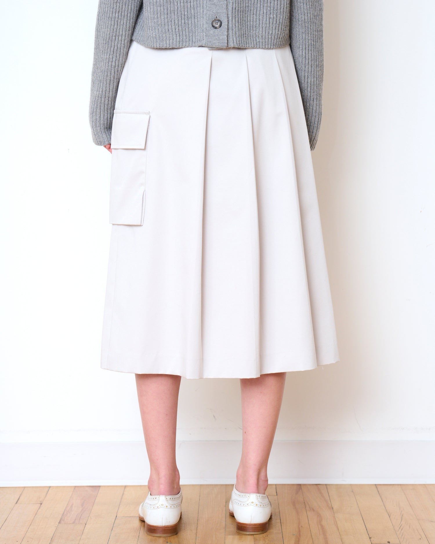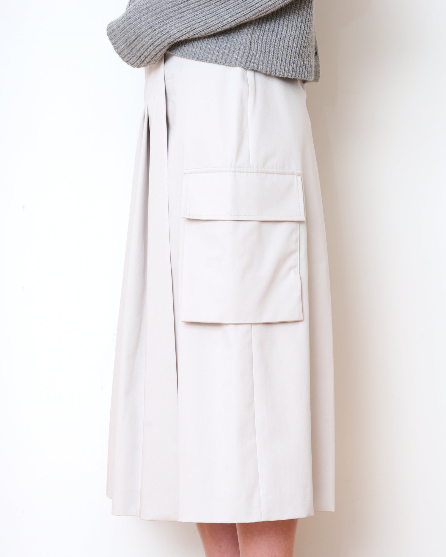 A subtle twist on a classic workwear staple, the Stanton Skirt is crafted in heavy cotton with beautiful knife pleats and an unexpected exaggerated cargo pocket. This skirt has the perfect balance of structured elegance and smart utility.