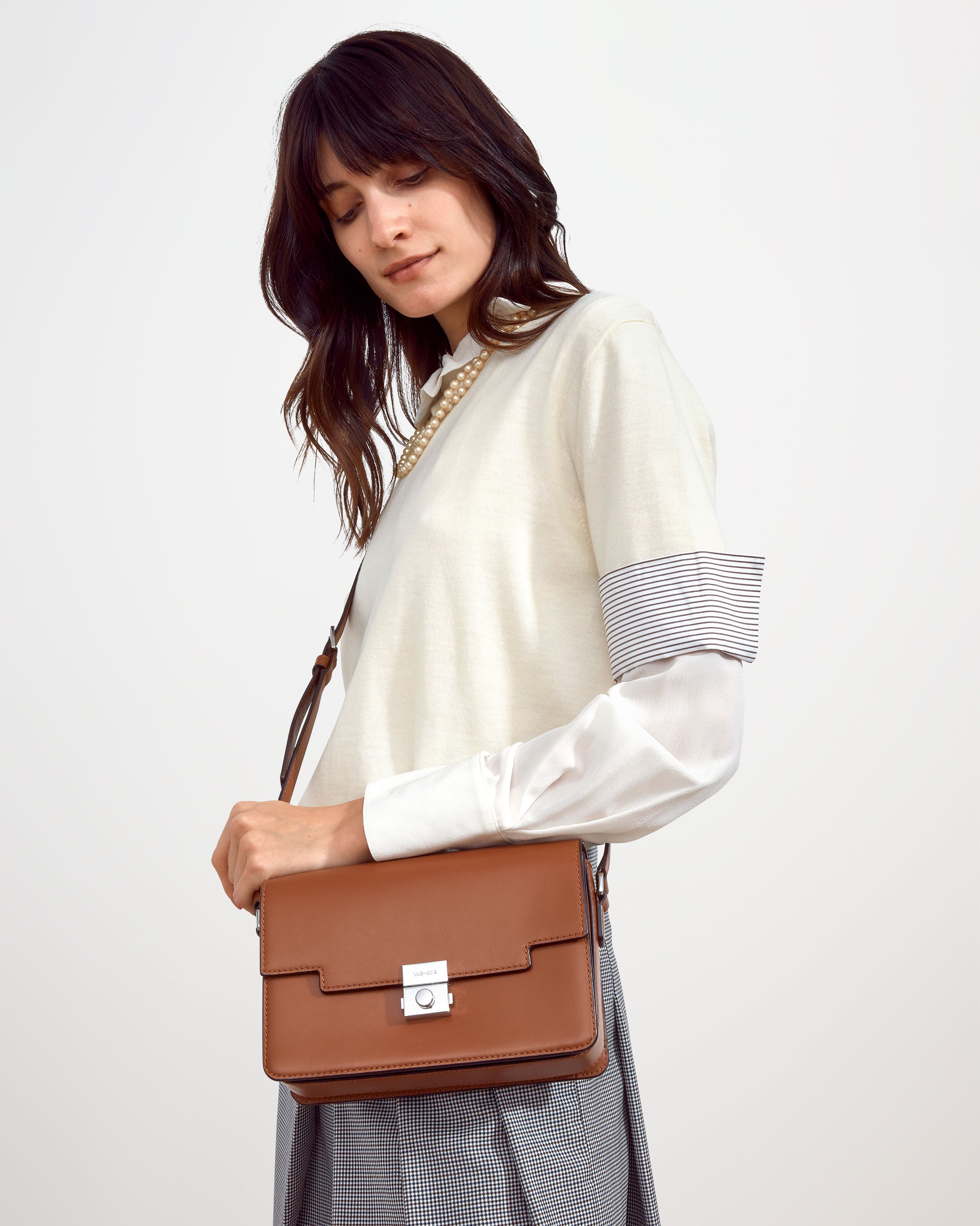 An elegant spin-off of the best-selling Retro Trunk, The Retro Shoulder is structured in shape with a sleek, engraved push lock closure and a leather adjustable shoulder strap.