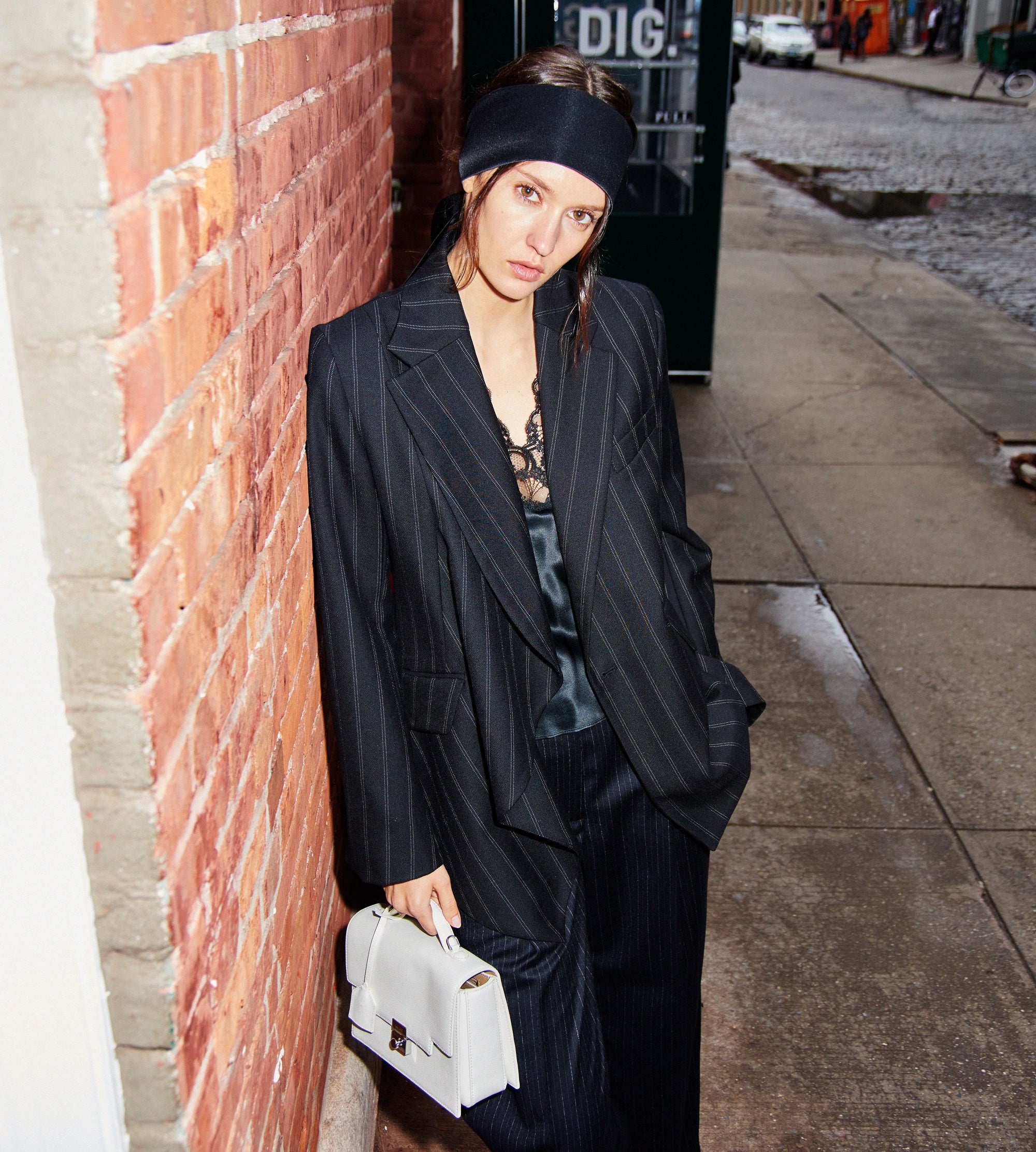 A modern interpretation of the utilitarian glamour trunk, the Retro Trunk bag is structured in shape with a sleek, engraved push lock closure and webbed crossbody strap.