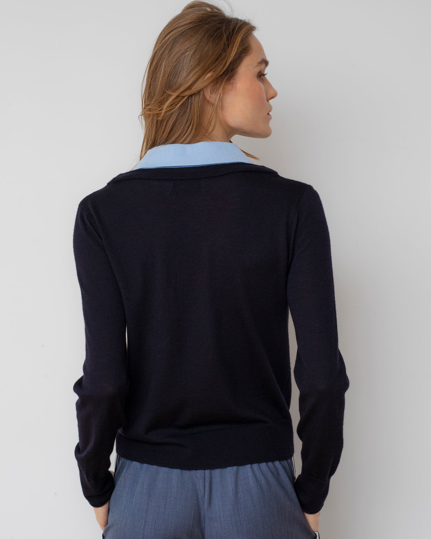 - Contrast ribbed viscose under collar
