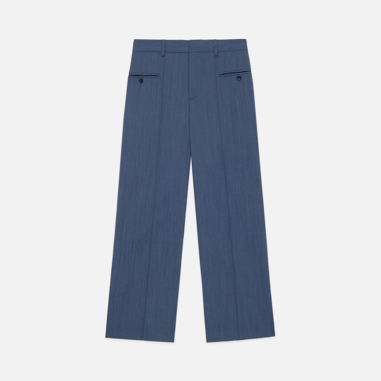 The Avenue Pant offers a study in linear precision, reimagining the classic trouser with refined, modern utility. Defined by a permanent front pintuck that holds a sharp, elongated silhouette, the design is elevated by signature wrap-around welt pockets that sweep across the hip for a clean, integrated feel. Distinctive exposed button hardware provides a polished accent, resulting in a polished profile that transitions with grace from day to night.