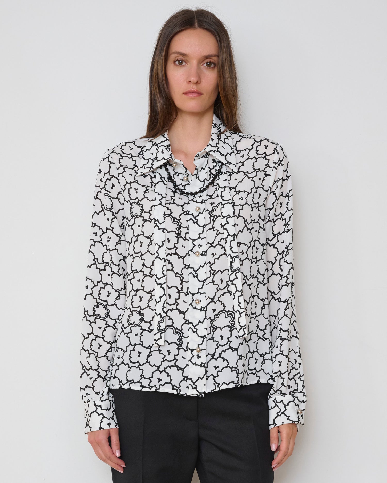 A study of playful femininity. The Academy Blouse II marries a timeless, polished silhouette with the spirit of whimsical prints. Crafted from a soft silk crepe, its graceful drape is accented with delicate detachable tie details and finished with distinct Italian bold buttons. The piece perfectly balances its refined grace with an unexpected, rebellious edge.