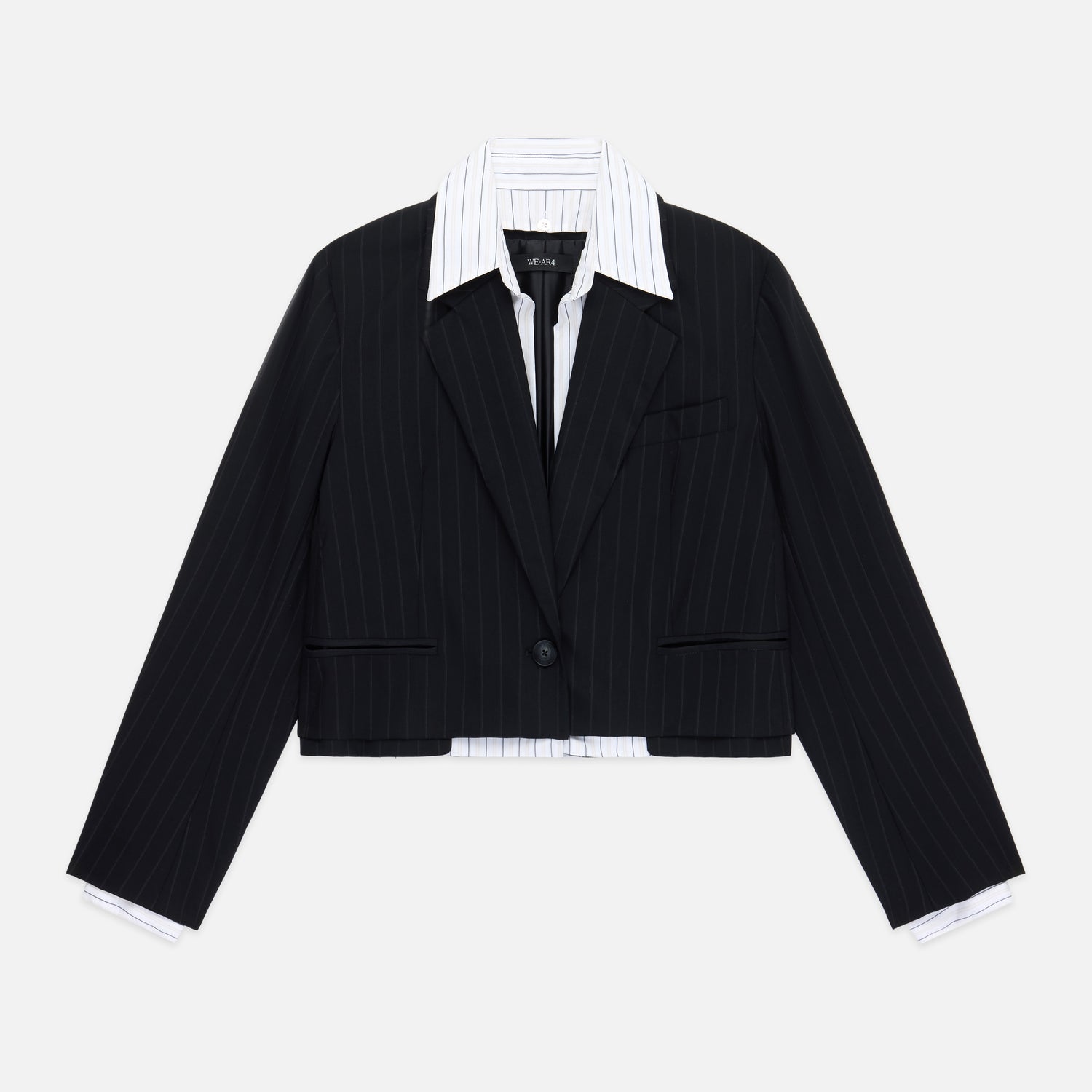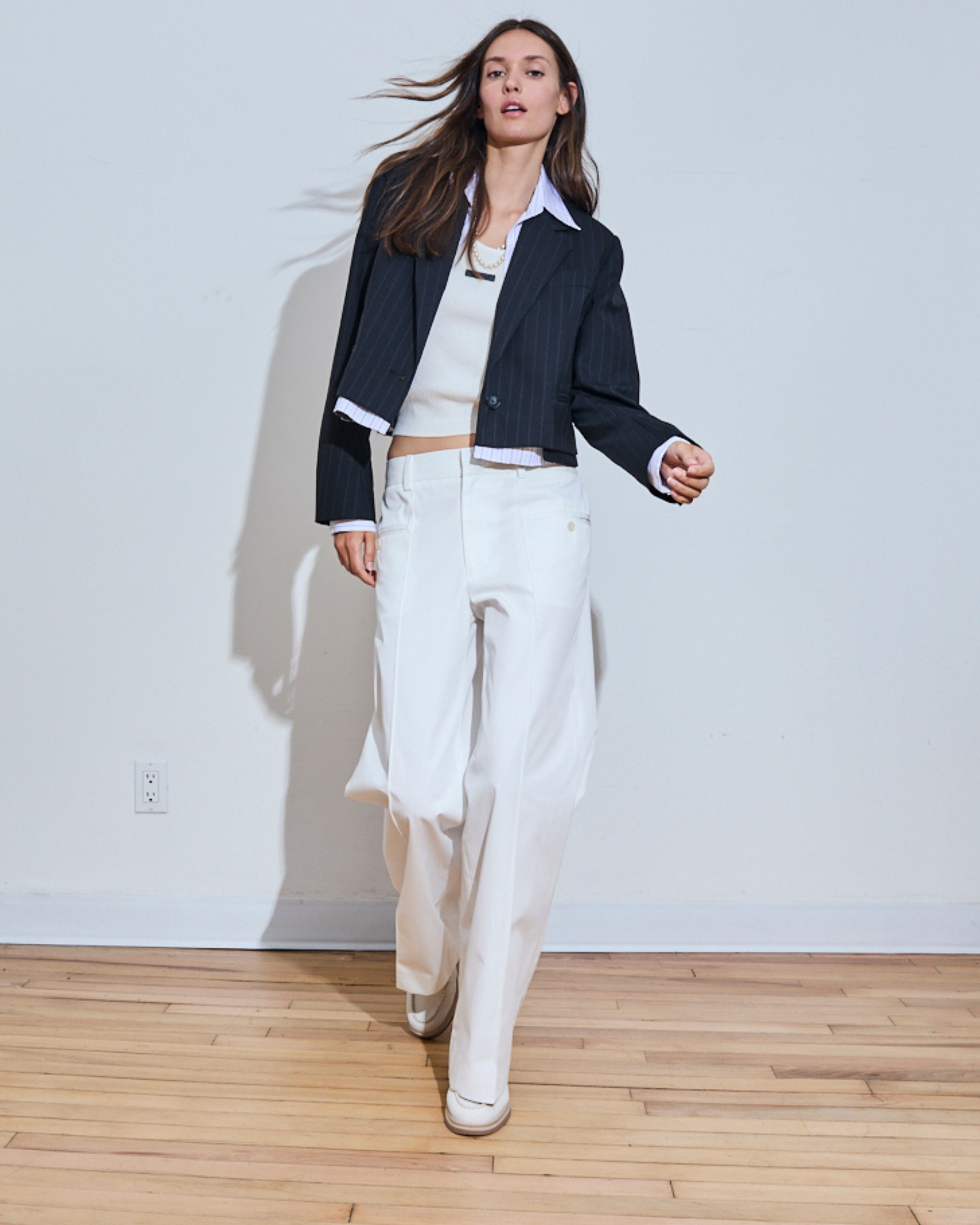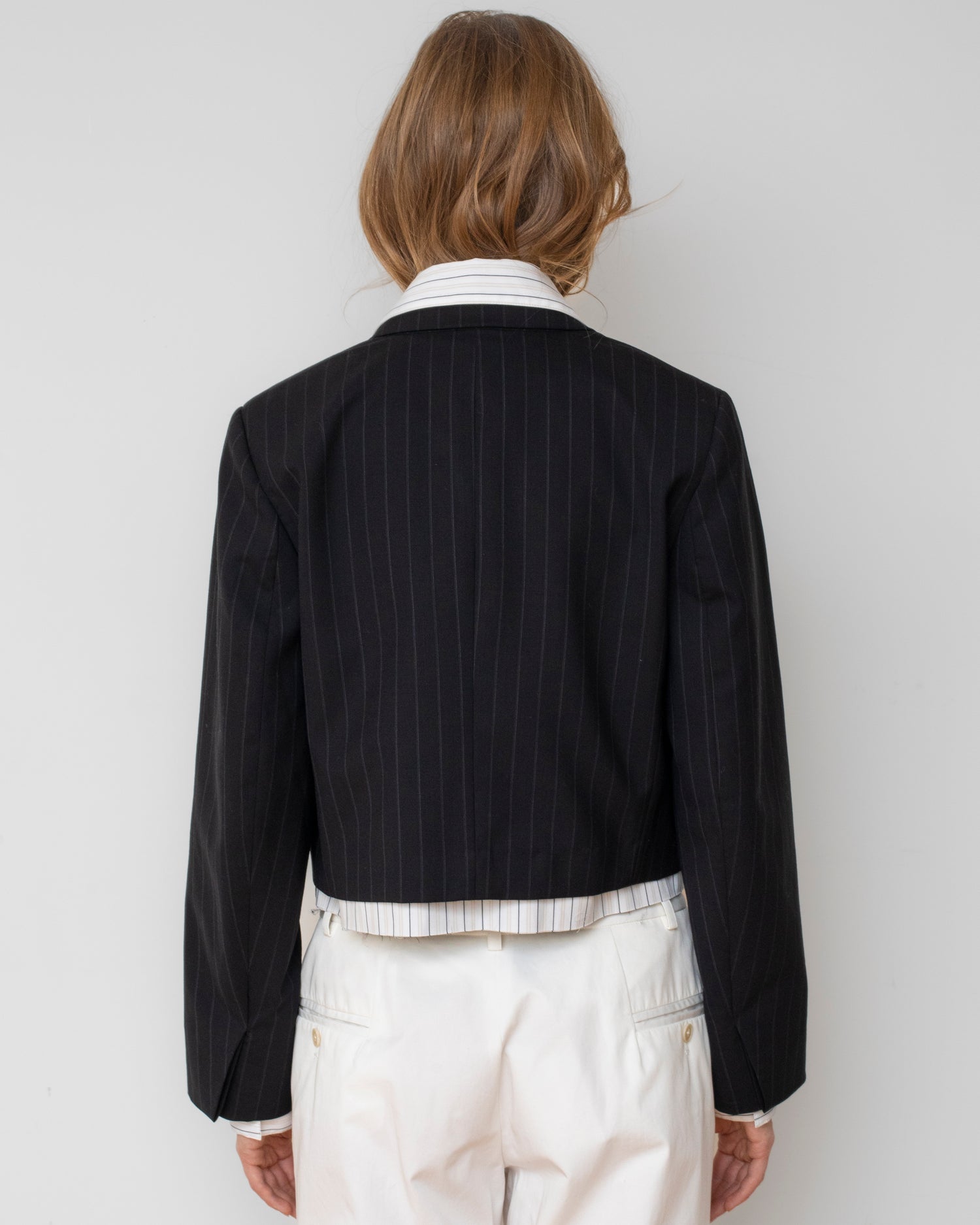 Engineered for a life in motion, the Bar Blazer brings a reactive, street-style spontaneity to modern tailoring. This transformative piece juxtaposes a structural wool shell with a crisp, detachable cotton poplin underlayer that mimics the look of a layered shirt. Its cropped fit eliminates traditional bulk, offering a look of tomboyish nonchalance that thrives in the city’s restless push and pull.