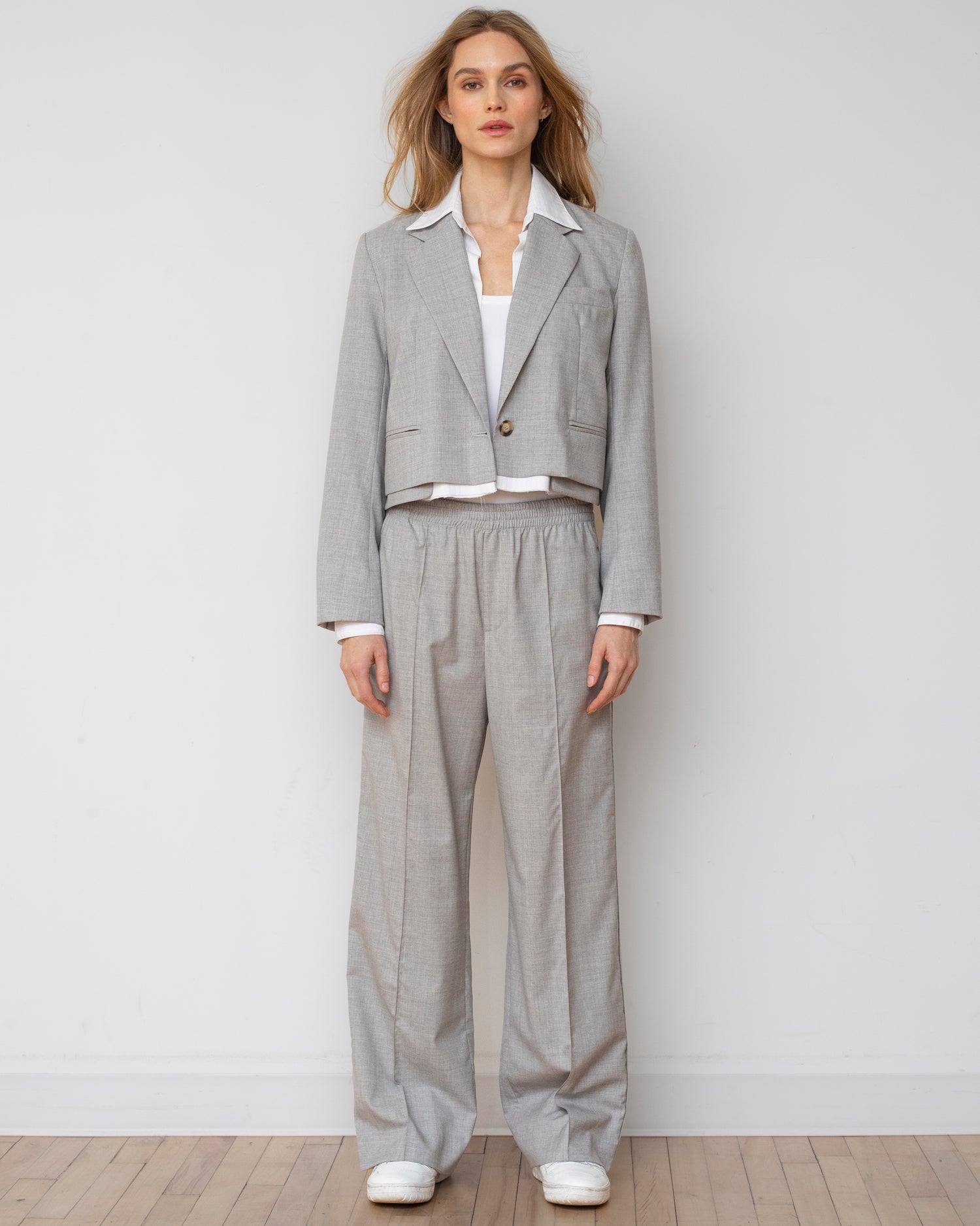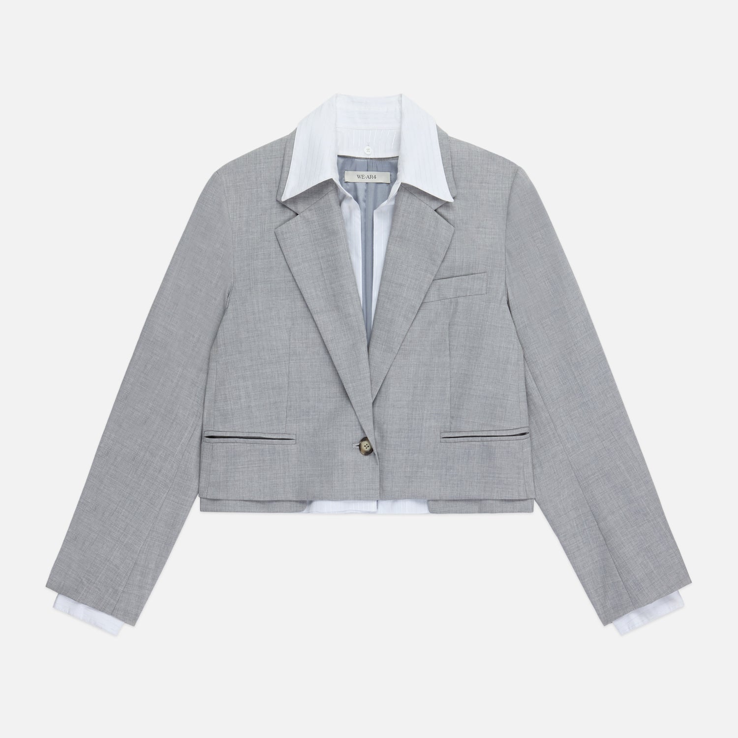 Engineered for a life in motion, the Bar Blazer brings a reactive, street-style spontaneity to modern tailoring. This transformative piece juxtaposes a structural wool shell with a crisp, detachable cotton poplin underlayer that mimics the look of a layered shirt. Its cropped fit eliminates traditional bulk, offering a look of tomboyish nonchalance that thrives in the city’s restless push and pull.