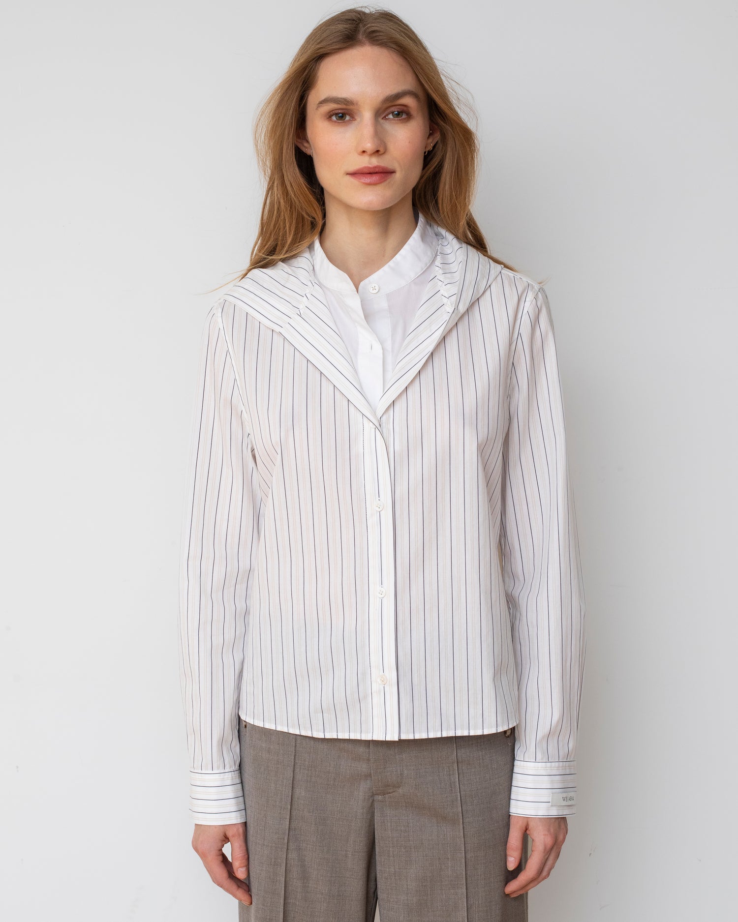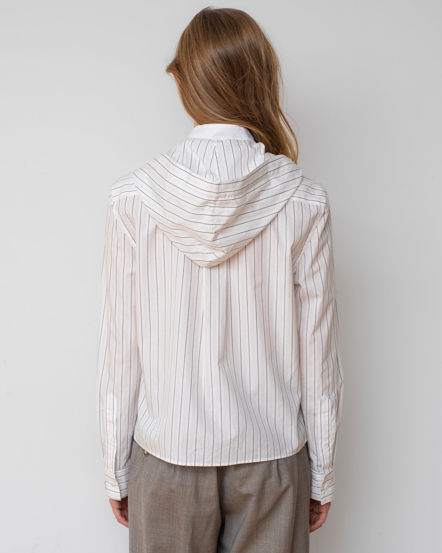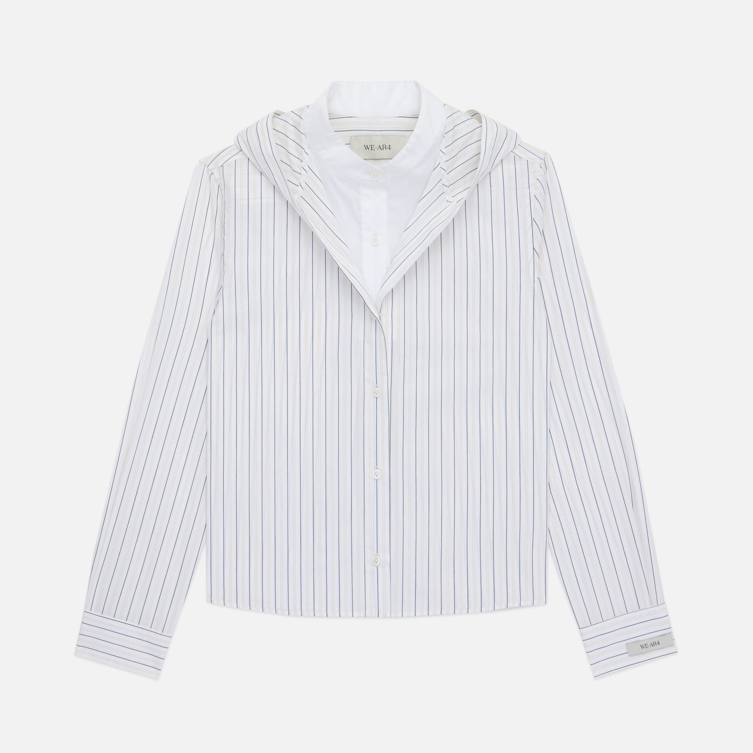 The Freestyle Shirt masterfully balances traditional tailoring with a reactive athletic sensibility through its double layering. A crisp, white stand collar on the inner layer contends with the structural V-neck of the striped, hooded outer shell, capturing the grit and graffiti aesthetic of the city.