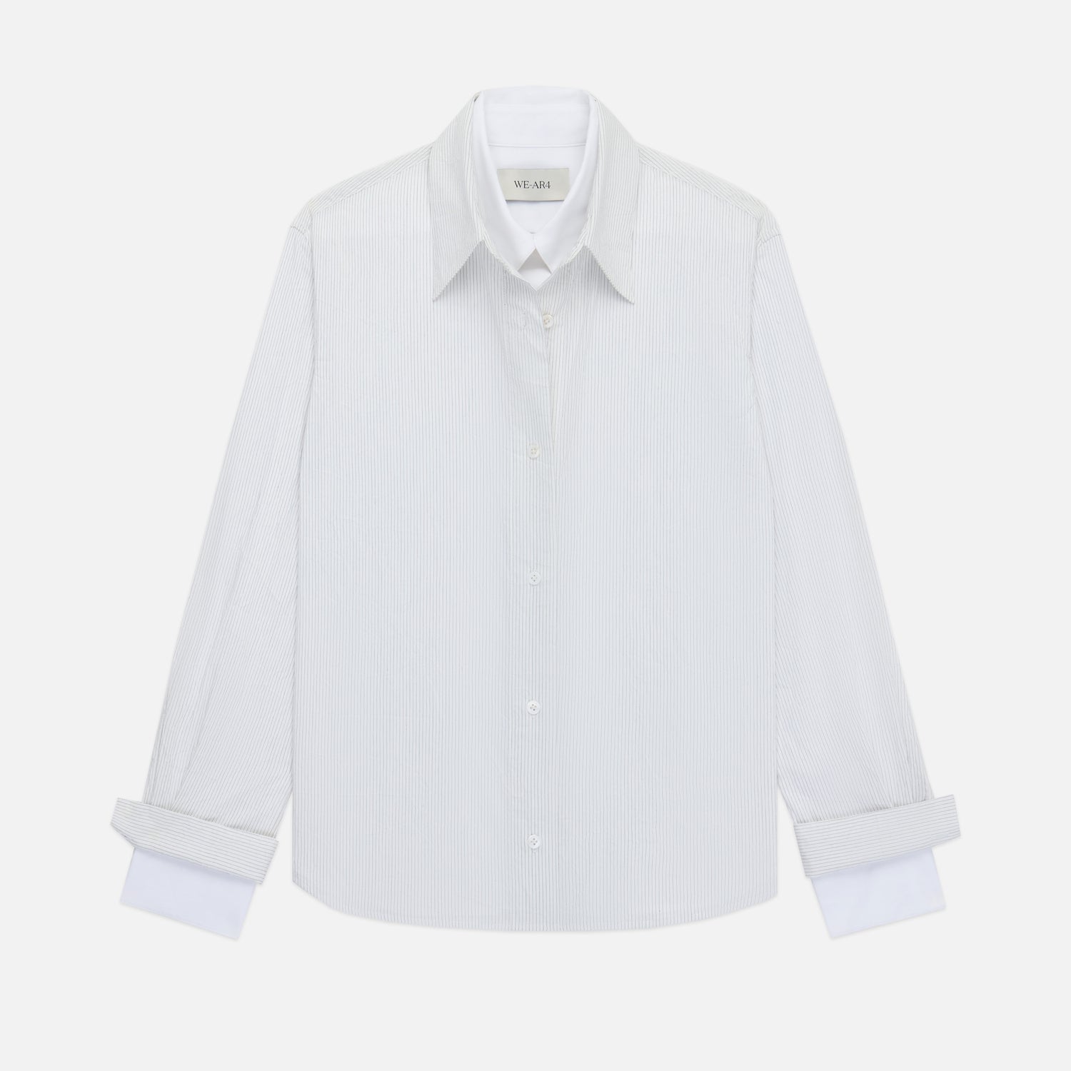 Redefining the art of dimension, The Layered Shirt is an elevated take on the quintessential button-down. Reconstructed from luxury deadstock poplin, the design pairs a traditional pinstripe exterior with a crisp white inner layer for a flawless, two-in-one silhouette. With its signature double collars and cuffs, it is a statement of effortless precision and sustainable craftsmanship.