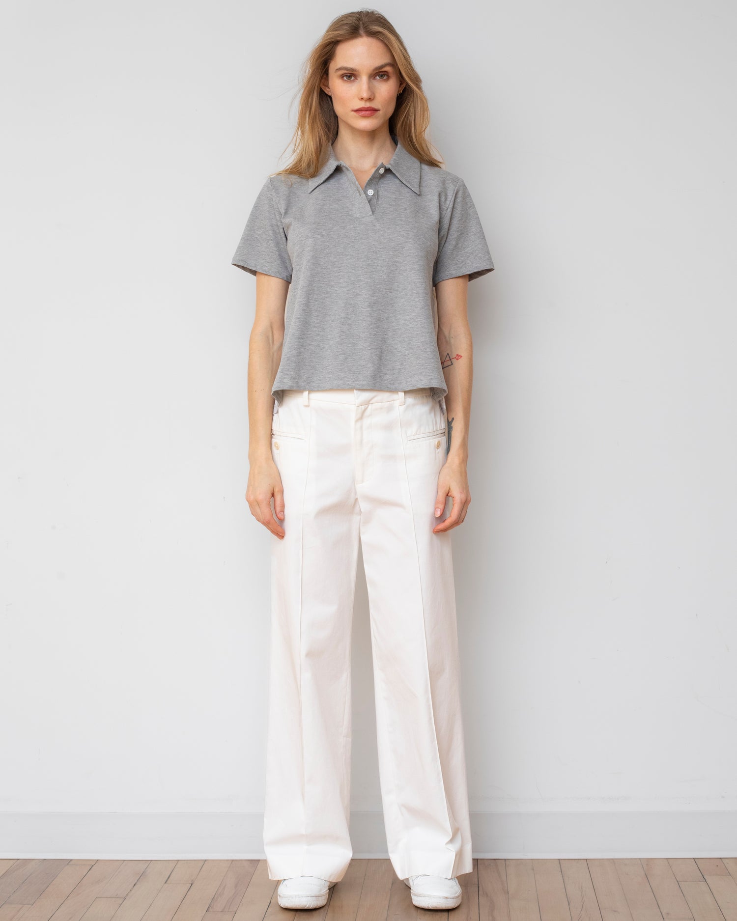 The Media Polo is a study in texture, seamlessly blending athletic heritage with preppy sophistication. Its hybrid design pairs a structured cotton pique front with a crisp cotton poplin back, bridging the gap between sport and elevated shirting. The silhouette is defined by a deep central box pleat, creating a voluminous, flared profile that offers fluid motion and a polished perspective from every angle.