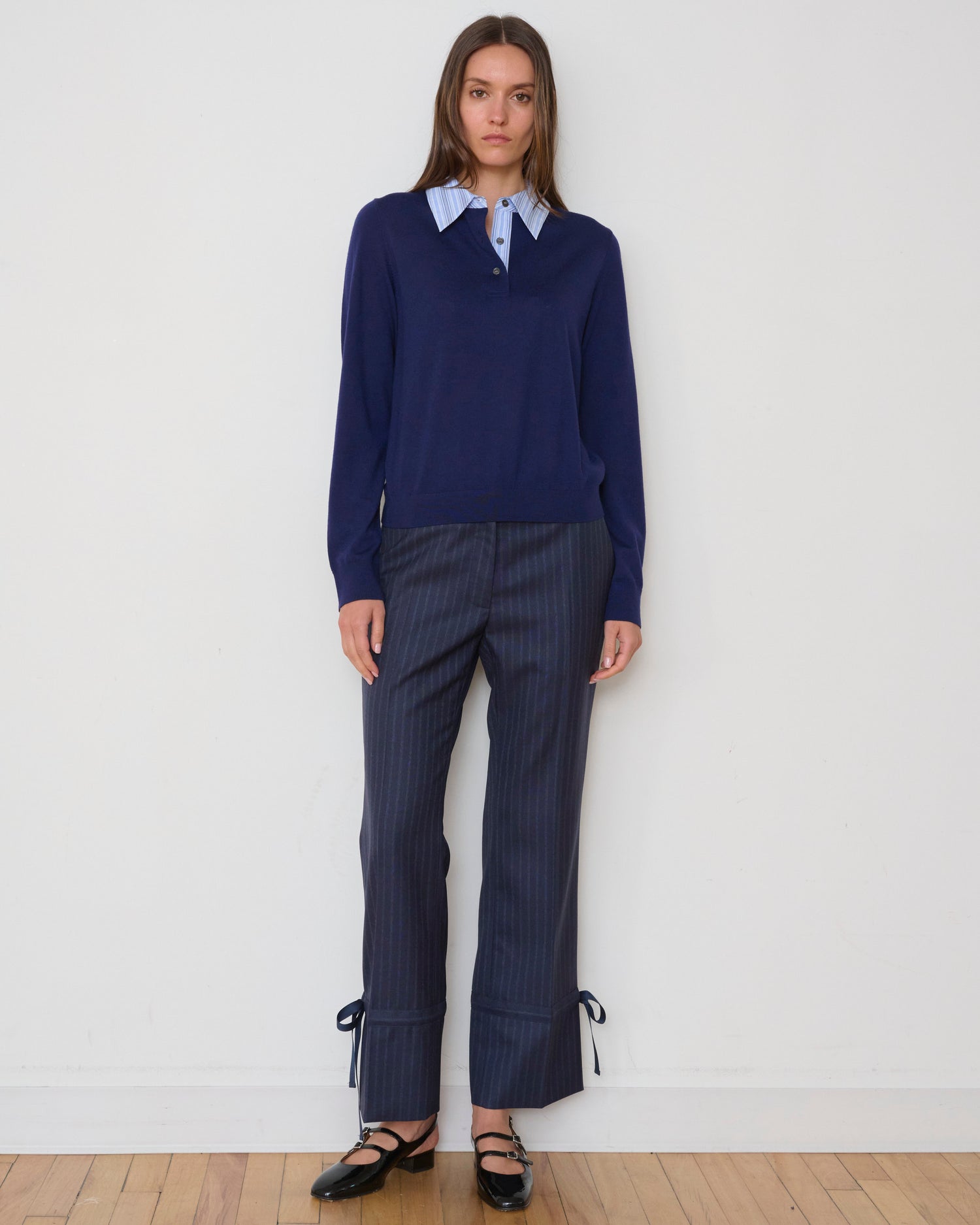 A study in refined contradiction, the Charlie Polo is a thoughtful reinterpretation of a classic staple. It seamlessly blends the luxurious drape of a fine lightweight merino wool with the sharp, graphic contrast of a crisp poplin collar, creating a sophisticated look that is both timeless and unexpectedly modern.