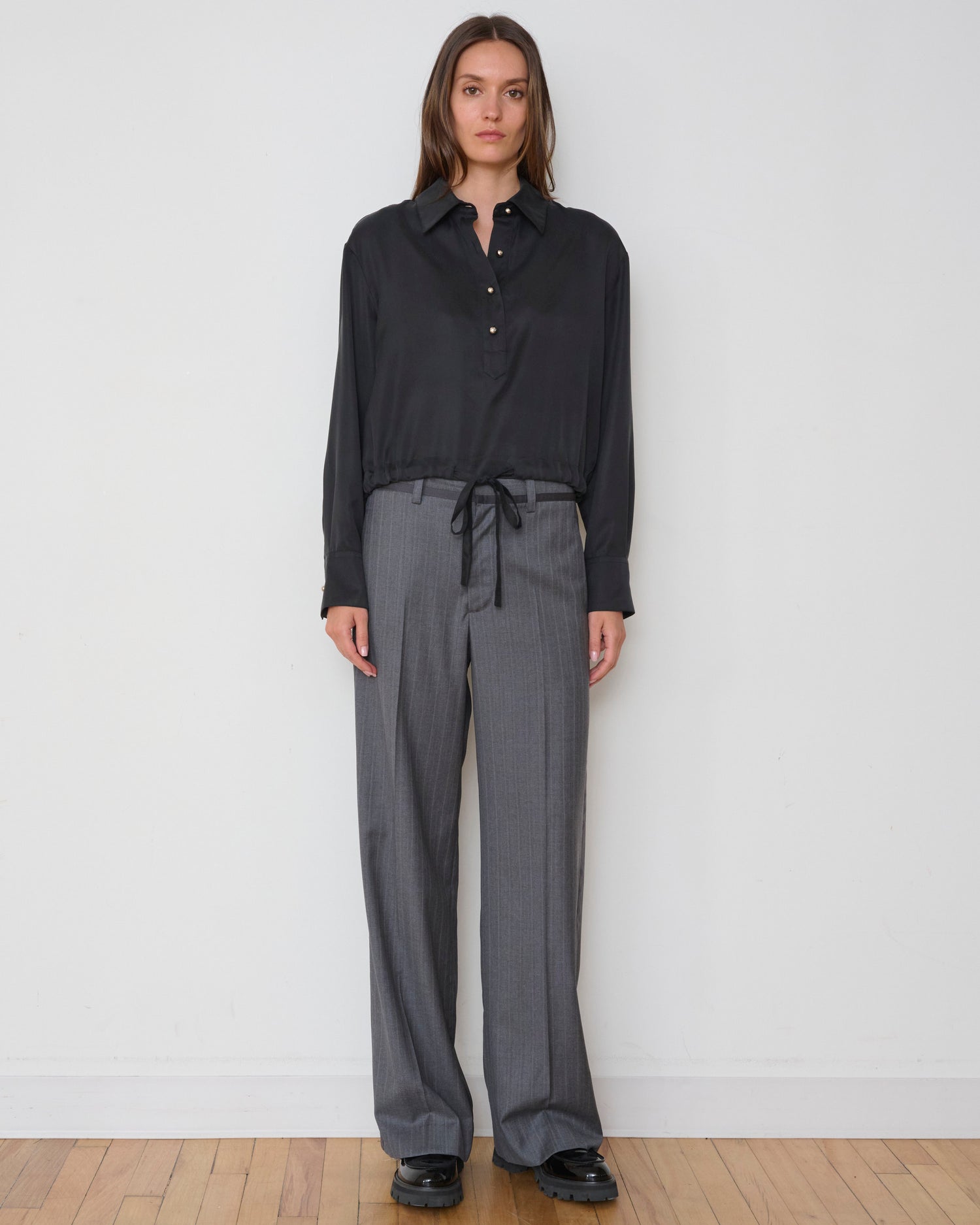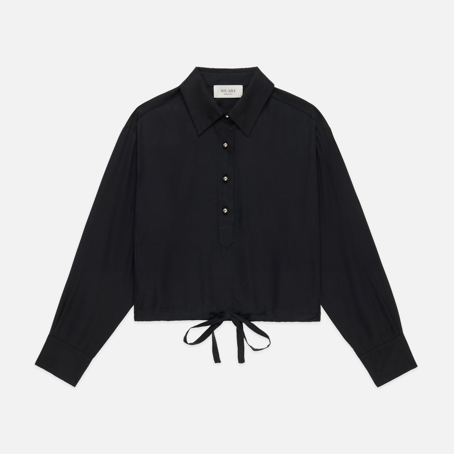 Effortlessly poised and unapologetically bold, the Crawford Blouse embodies a new kind of modern femininity. Crafted from luxurious silk or cupro, this piece redefines the classic shirt by blending polished tailoring with rebellious fluidity. Its cropped silhouette and clean placket with distinct Italian bold buttons add a touch of drama, while the functional drawstring at the hem allows you to transition the silhouette from relaxed to cinched.