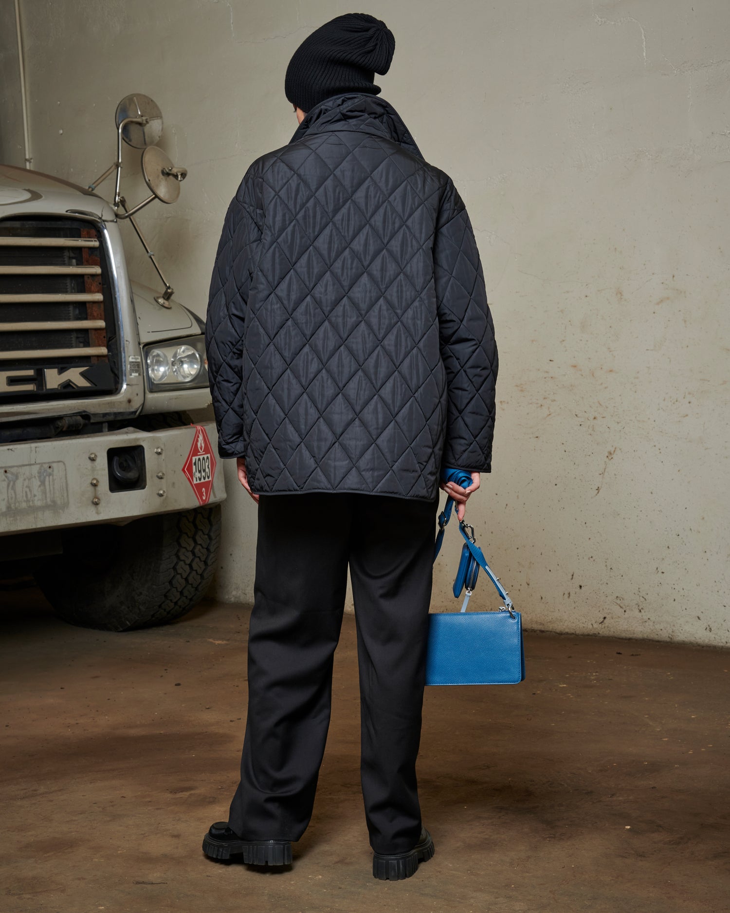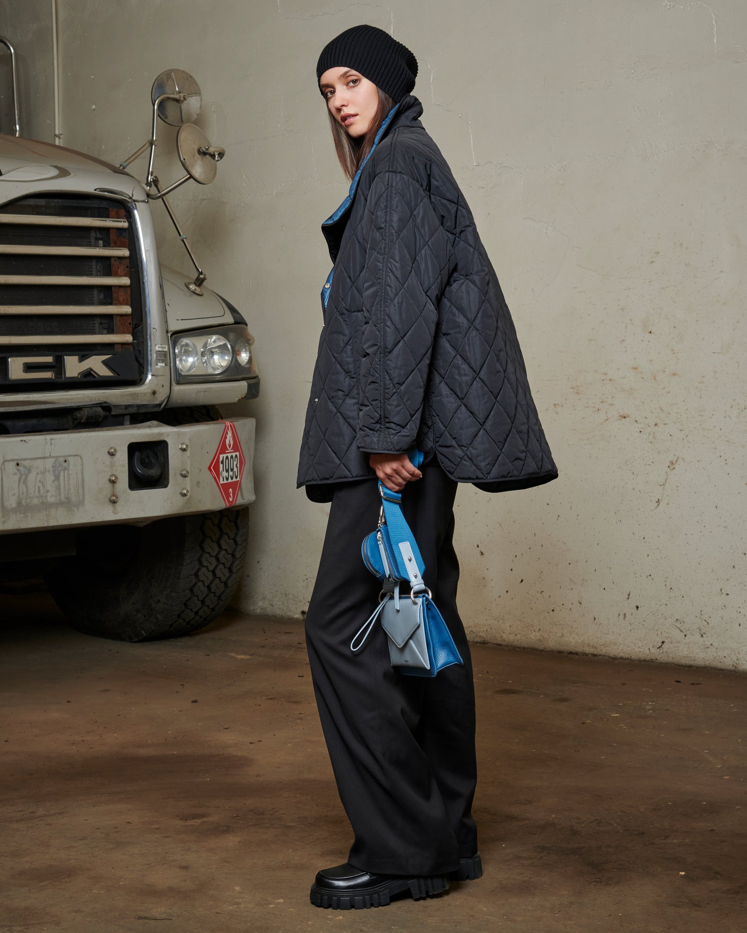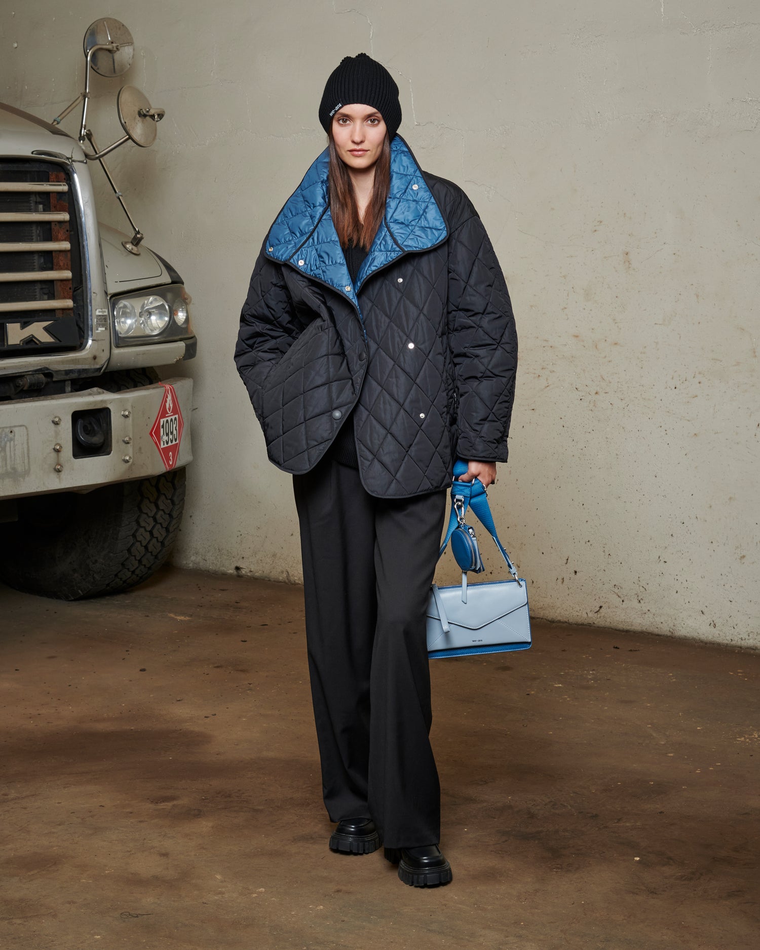A new take on a classic staple — the quilted barn jacket — the Soho Shell is designed with plentiful unexpected details. Lattice work quilting, a funnel neck collar, asymmetrical snap buttons and a contrast color lining visible at the hem, cuff and collar give the silhouette a new attitude.