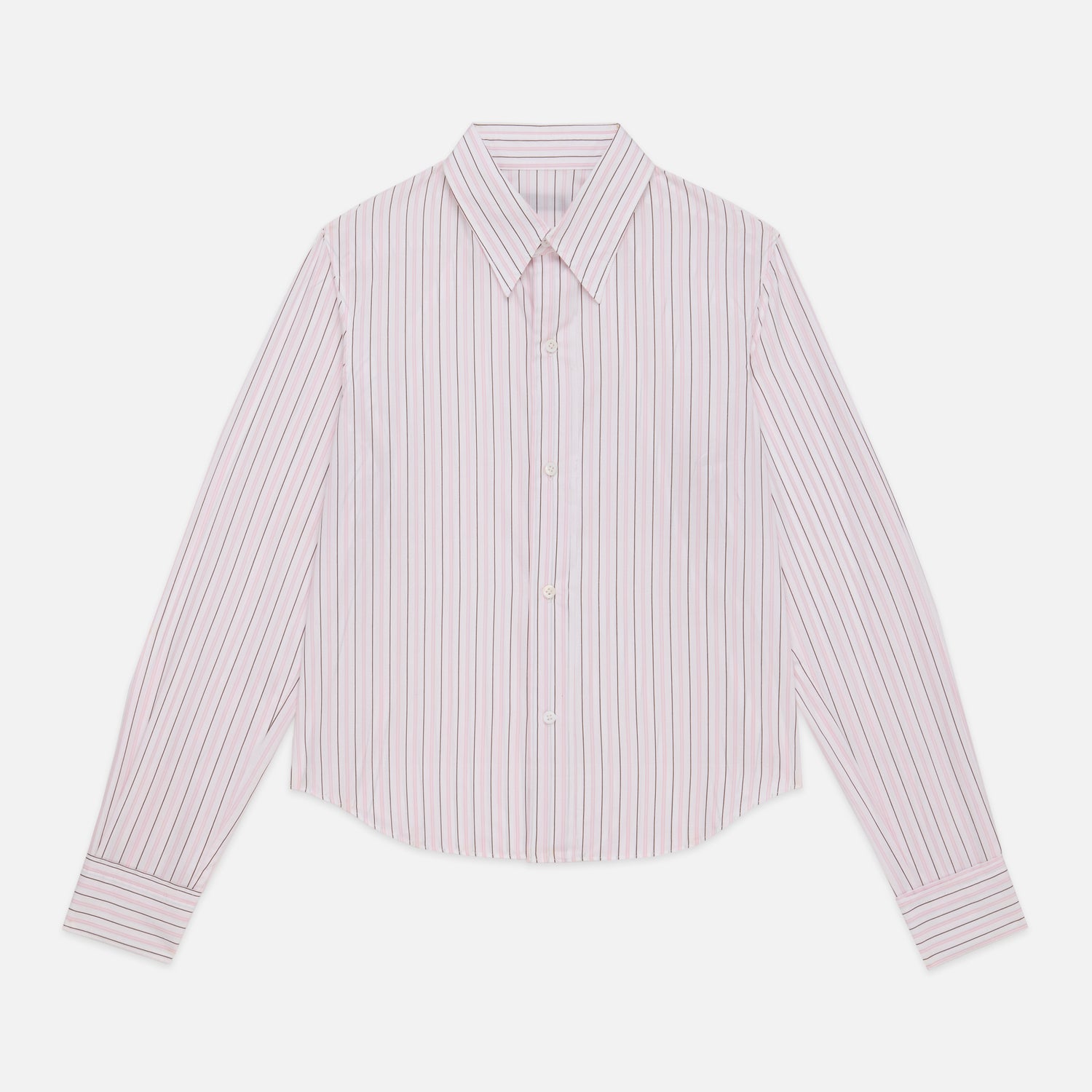 - Raw-edge finish at front placket and cuffs