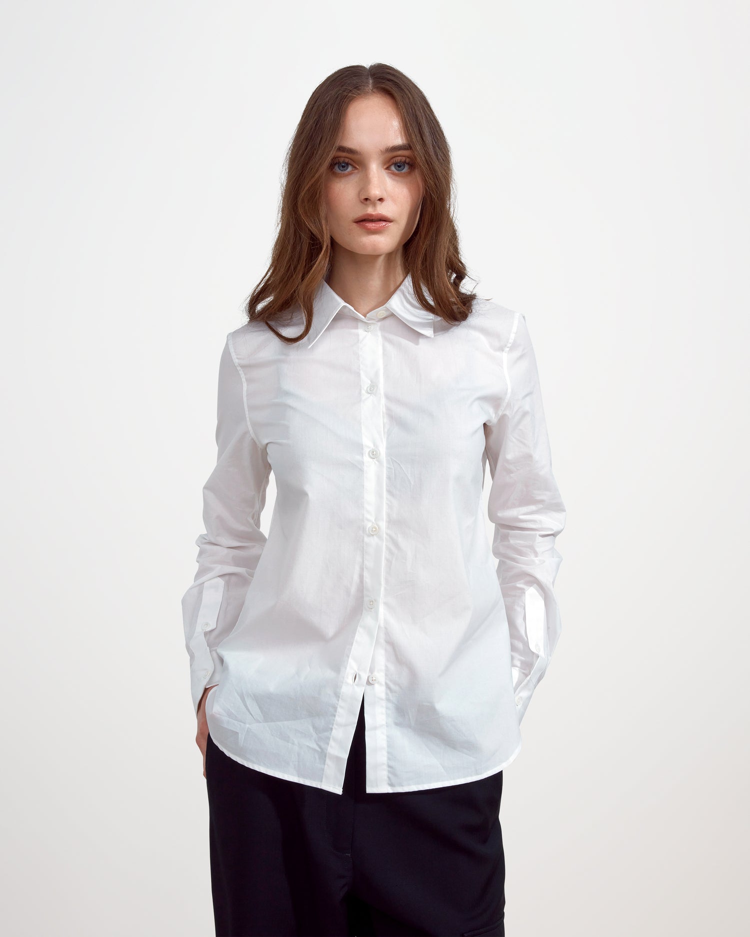 A feminine take on a classic menswear shirt, the Fitted Collared Shirt is crafted in crisp striped or plain cotton with Italian mother-of pearl buttons.
