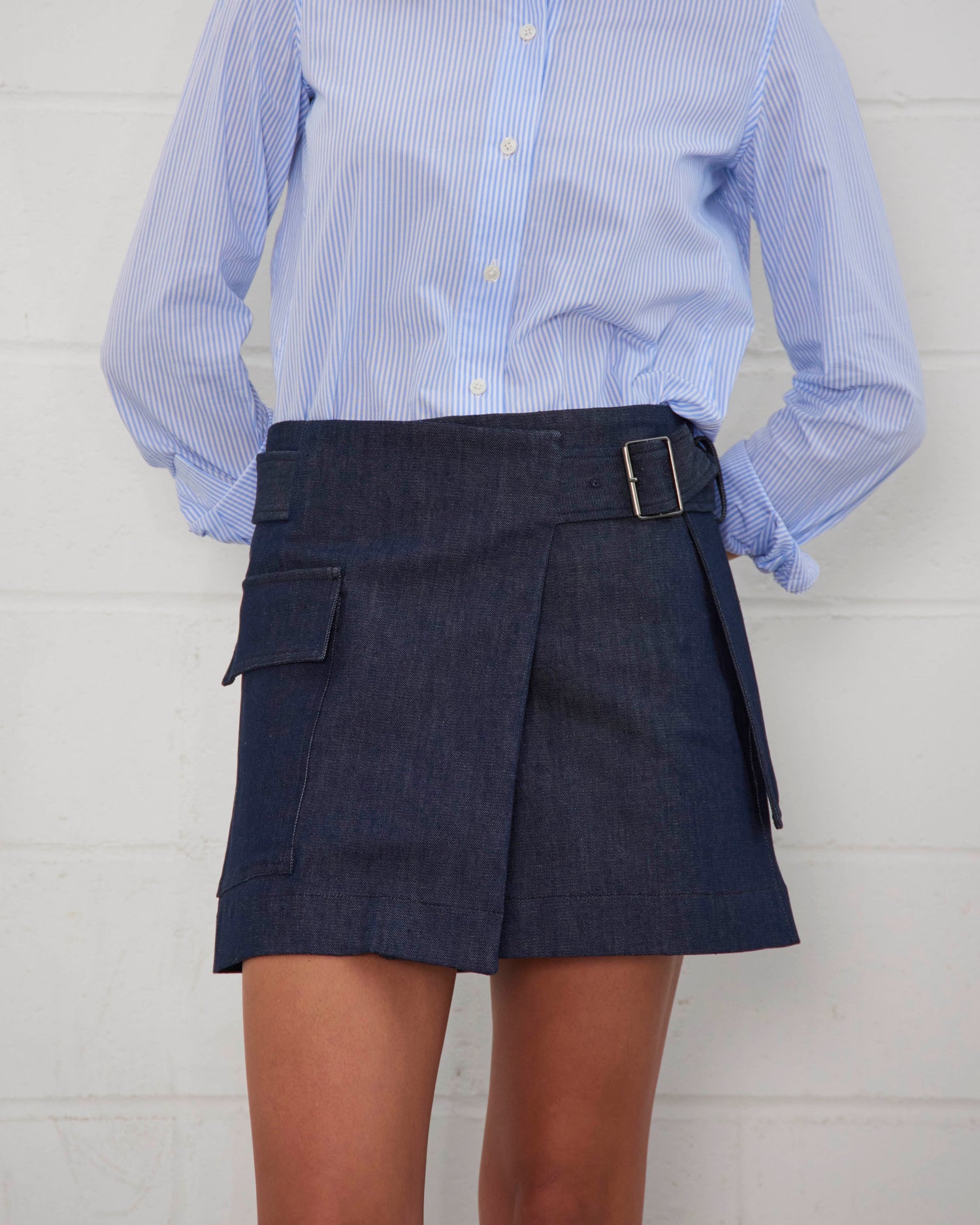 The Cargo Skirt is a must-have utilitarian staple. With its unique asymmetry, sleek belting detail and exaggerated pocket, this mini skirt adds an element of smart utility to any wardrobe.