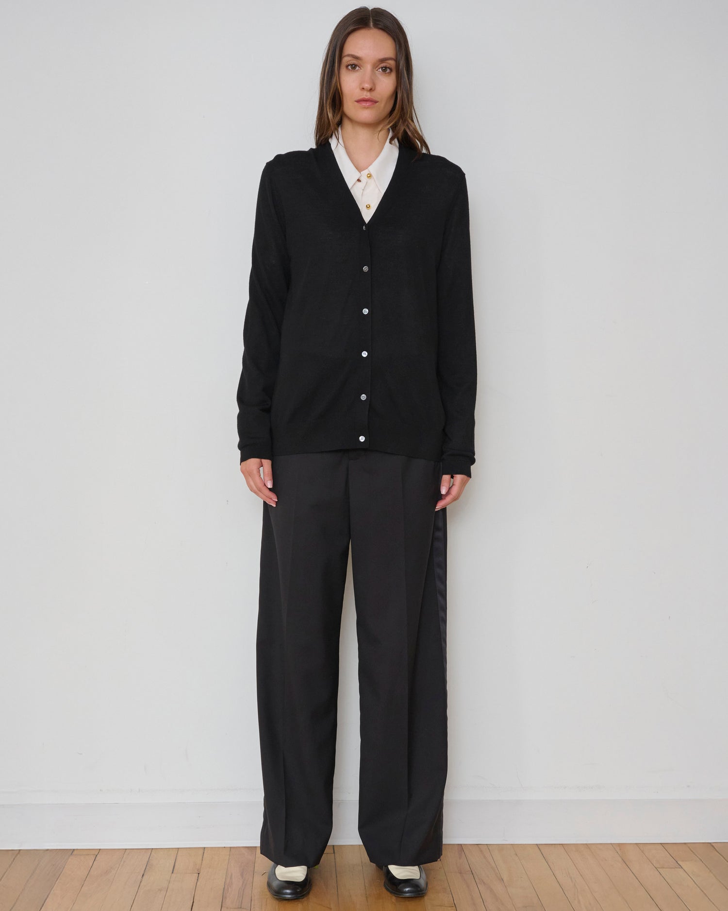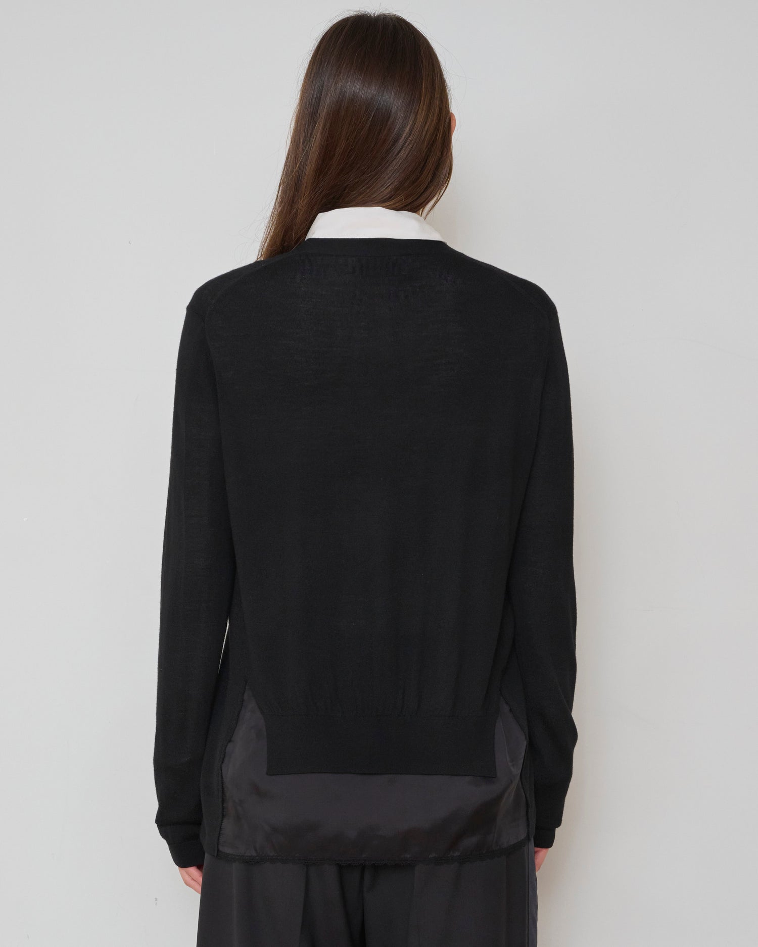A romantic take on a preppy classic, the Daisy Cardigan is crafted from lightweight merino wool and coupled with a mixed media satin-like cupro lace combo at the back hem. Throw it over the shoulder or layer it under a blazer, this feminine knit is the perfect piece that takes you from desk to dinner.