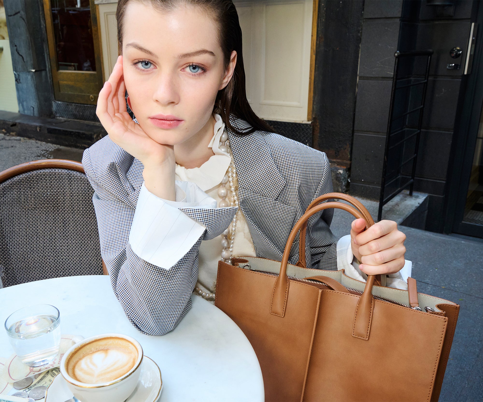 - Adjustable and detachable leather crossbody strap (35.5“ – 40.5“)
