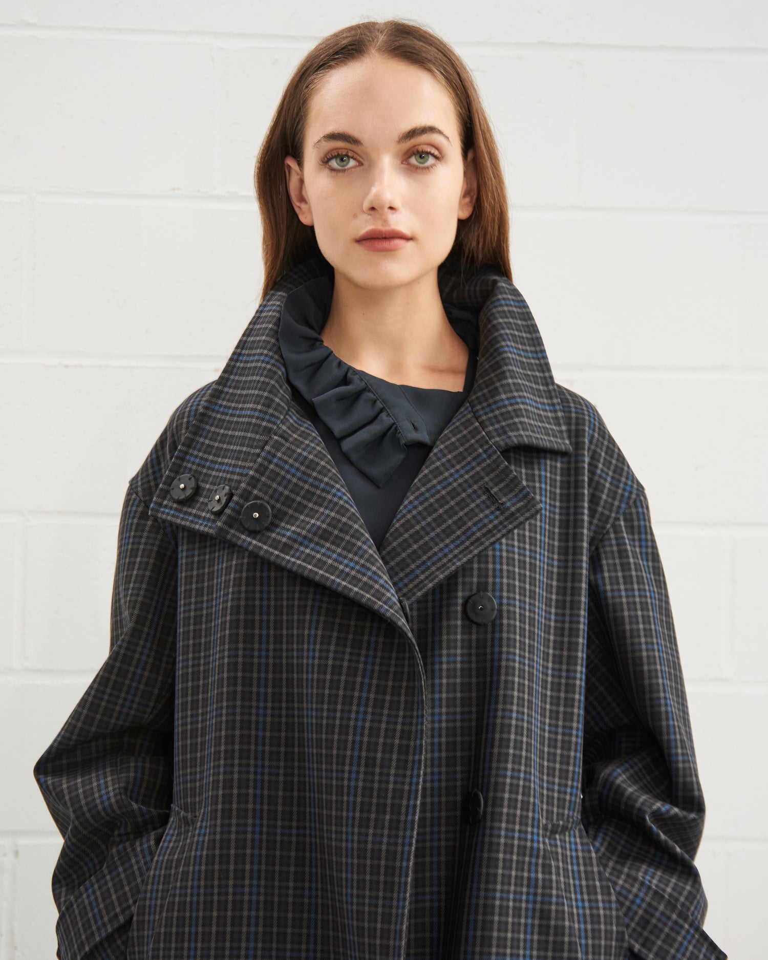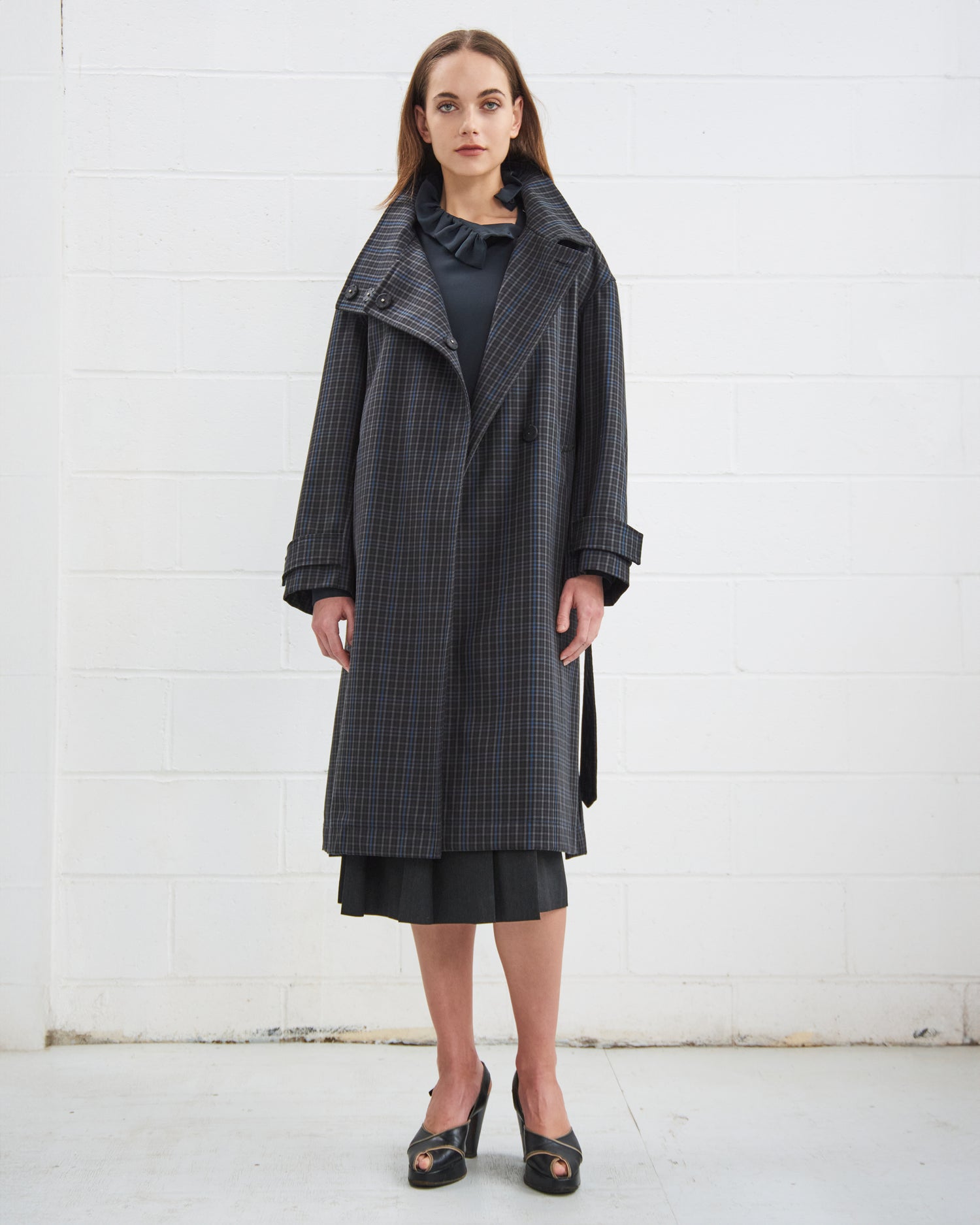 The Jane Trench packs a lot of attitude in one piece. Its oversized men’s wear-inspired silhouette adds subtle drama to daywear. Stacked with details, such as utilitarian self-belt, a standup snap collar and belted cuffs, the Jane Trench can be worn with jeans, tailoring or a feminine dress for a sophisticated contrast.