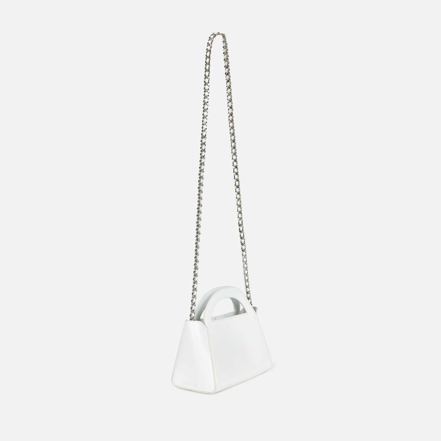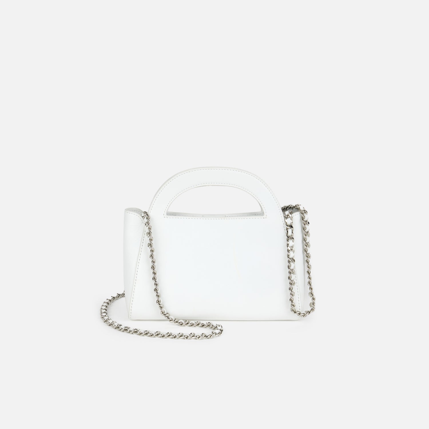 A modern, minimalist take on the structured box bag, the Moonlight Bag embodies the idea of form and function. Crafted in beautiful smooth leather with a detachable braided metal leather chain strap, this charming top handle is the perfect bag for day and night.