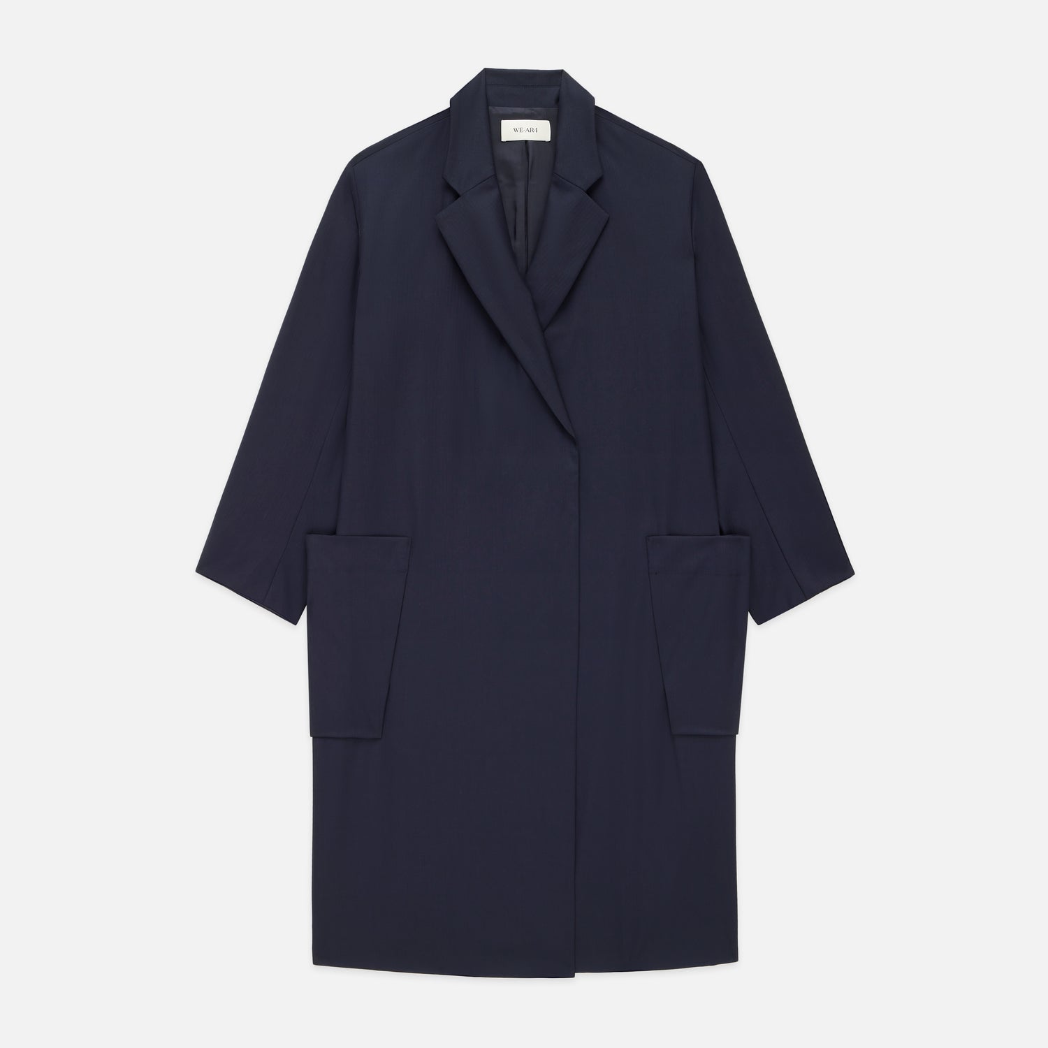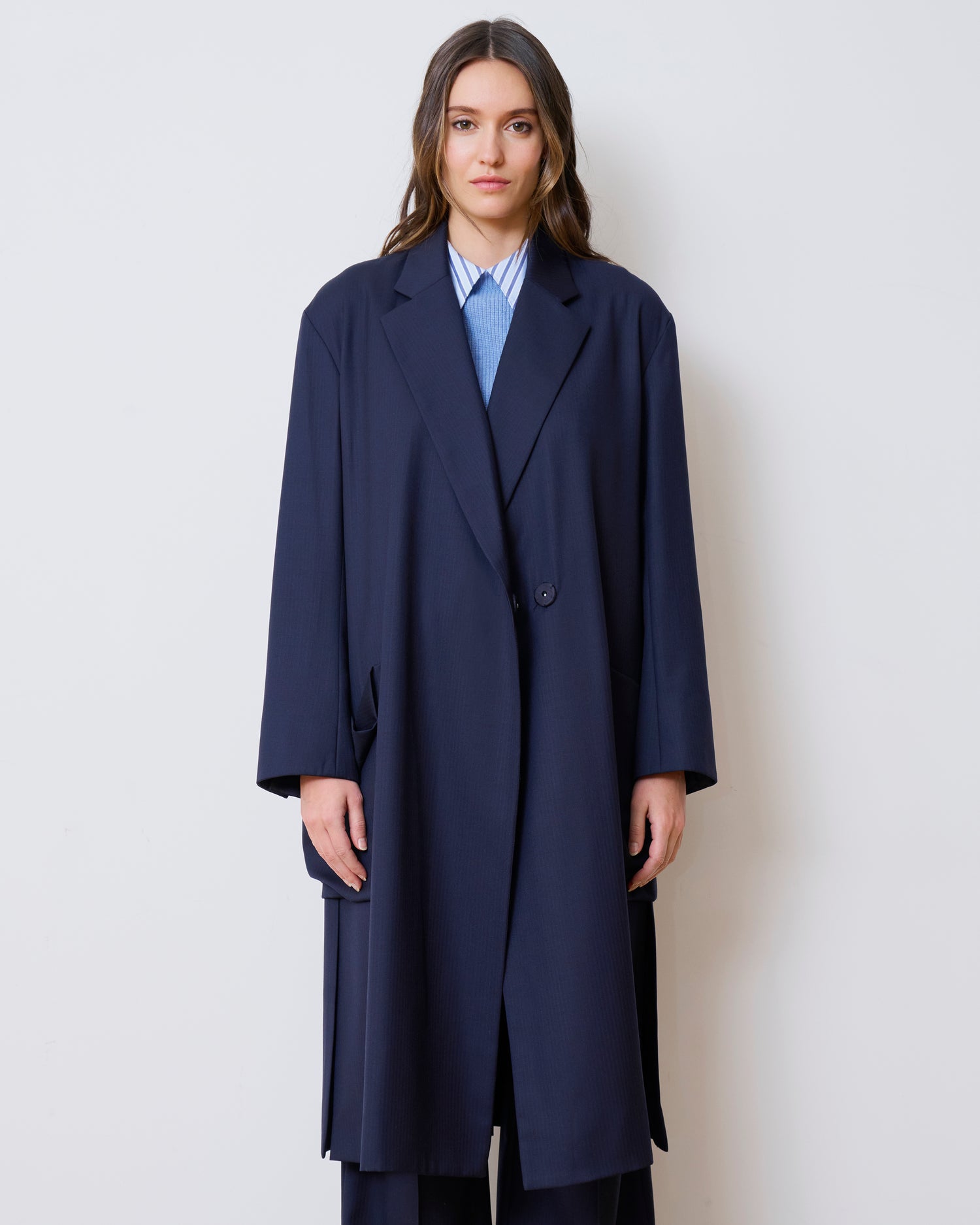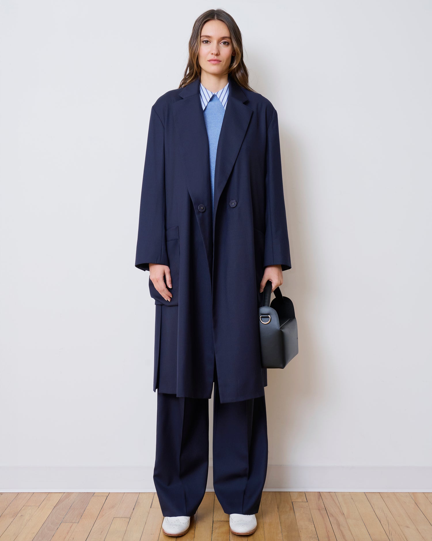 The tailored, menswear-inspired topper is reimagined and infused with elements of fluid femininity. Seductively soft, this double-breasted oversized silhouette is crafted from luxurious wool and coupled with oversized, gaping pockets for a touch of juxtaposing utility. The Outsider Overcoat demands attention as you effortlessly move through your day.