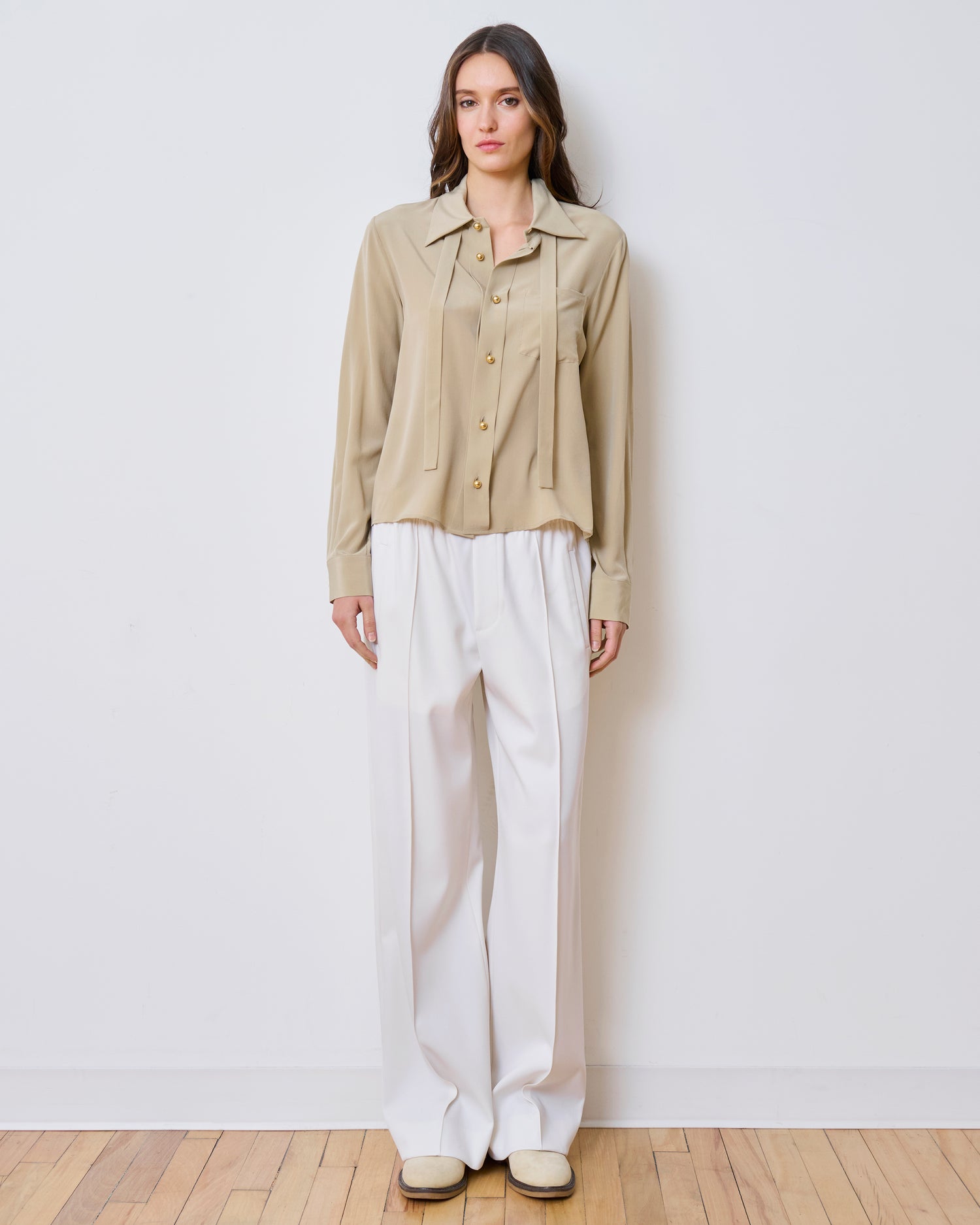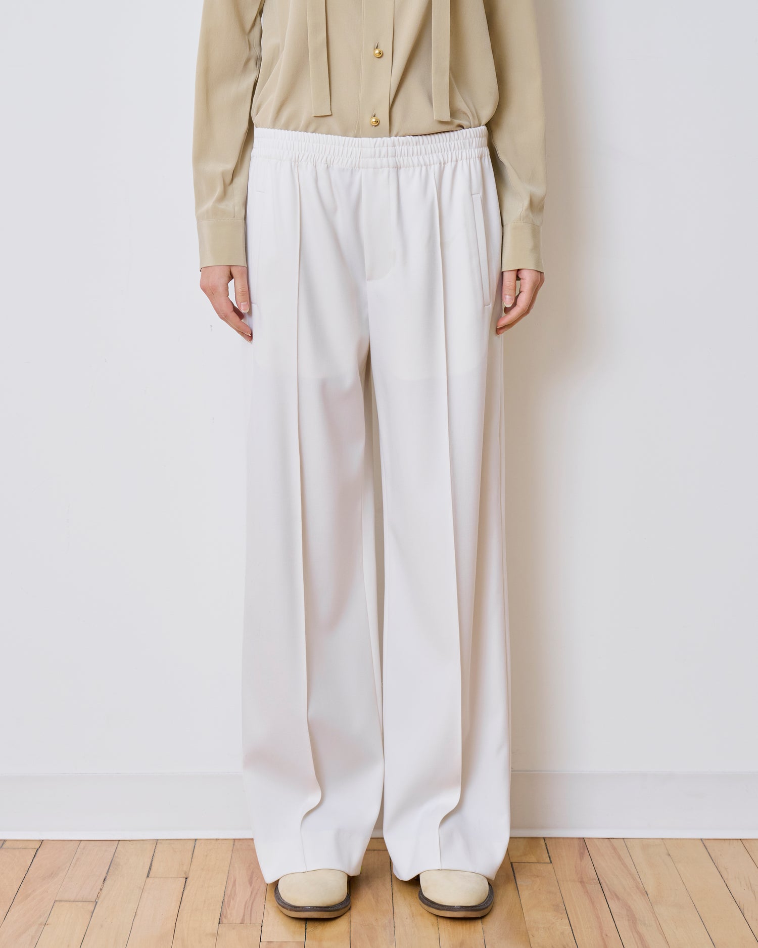 Where comfort meets sophistication, the Prep Trouser is a track pant reimagined for a clean, collegiate aesthetic. It's a study in ease, with an elastic waistband for ultimate comfort, while a sharp pintuck detail at the center front adds a tailored, refined line. It's a key piece for modern dressing, blurring the lines between polished style and ultimate comfort.