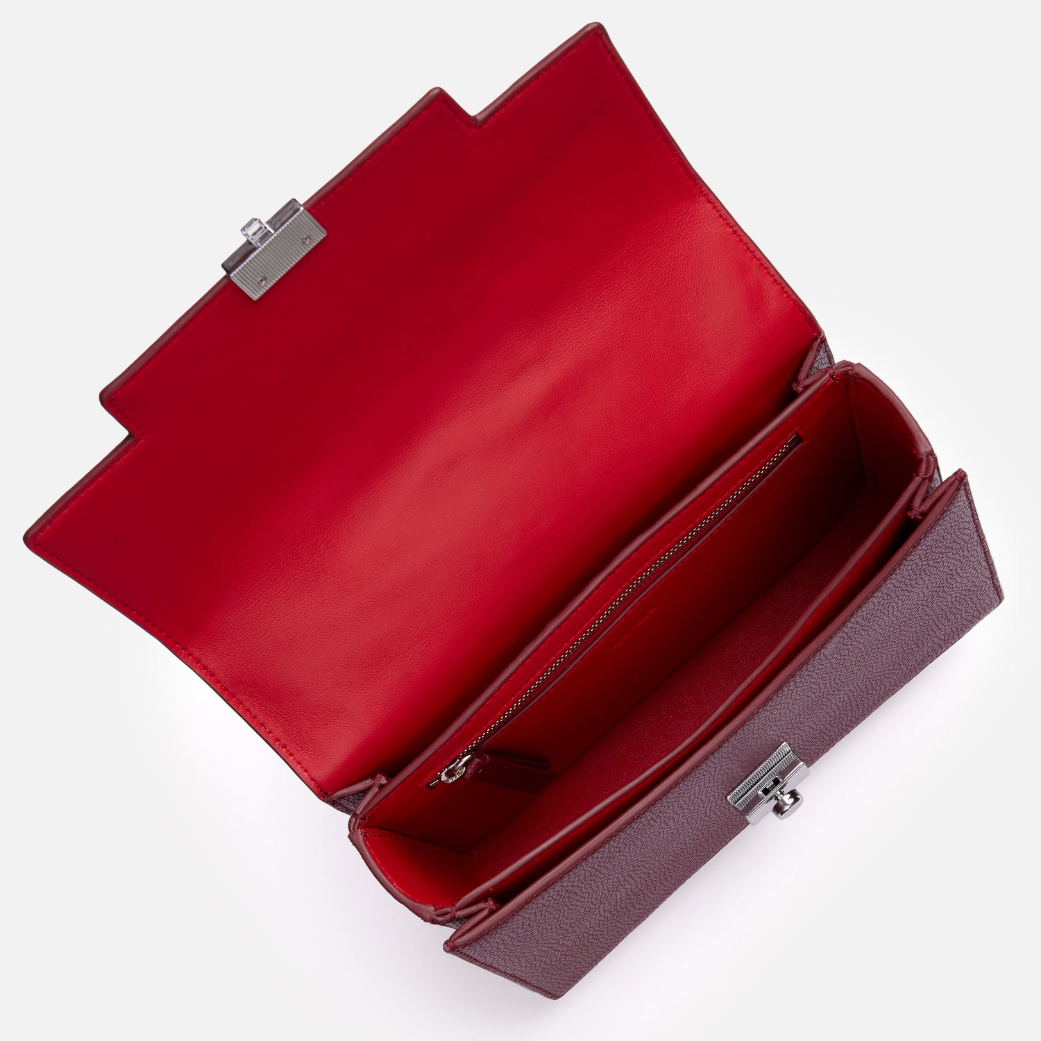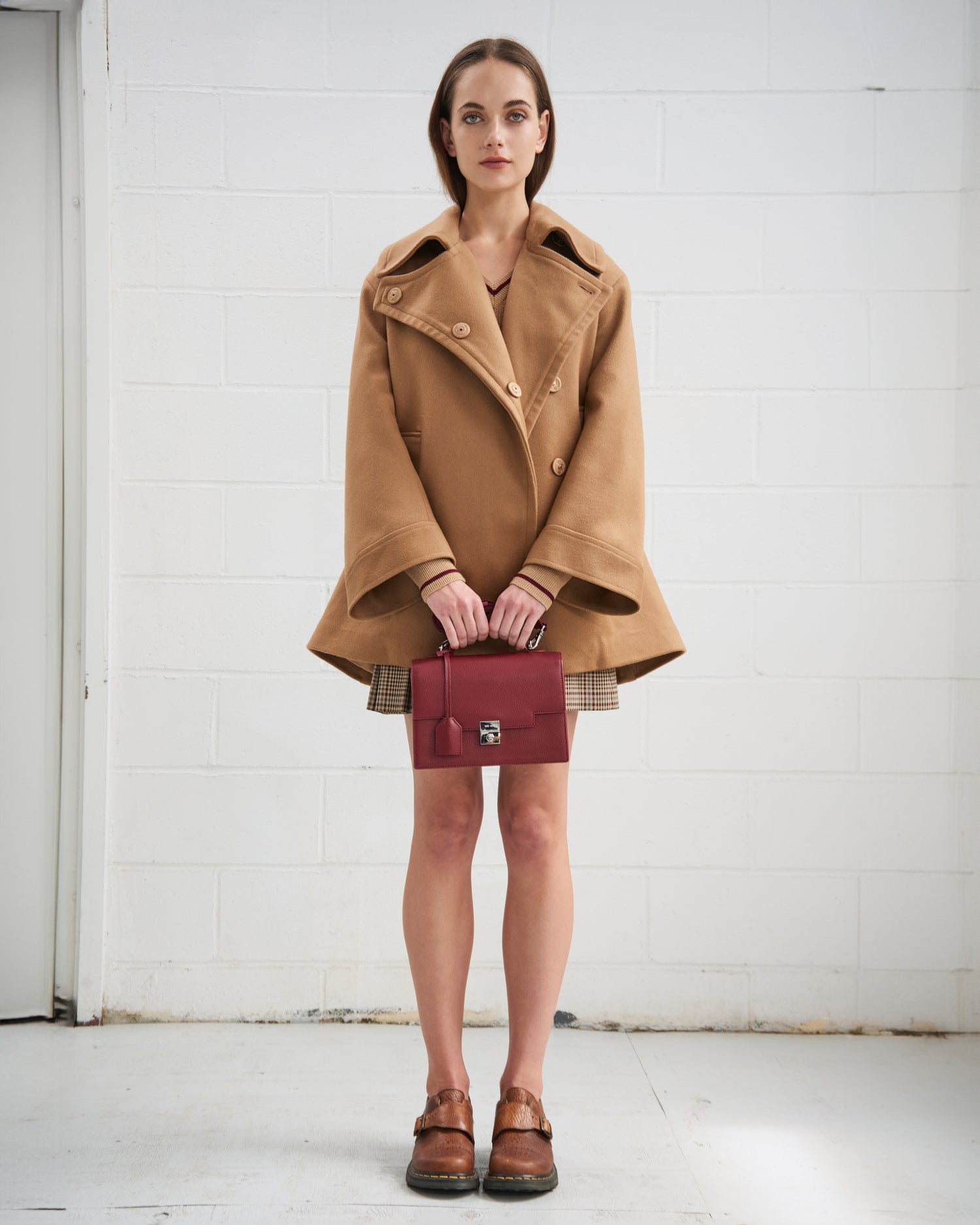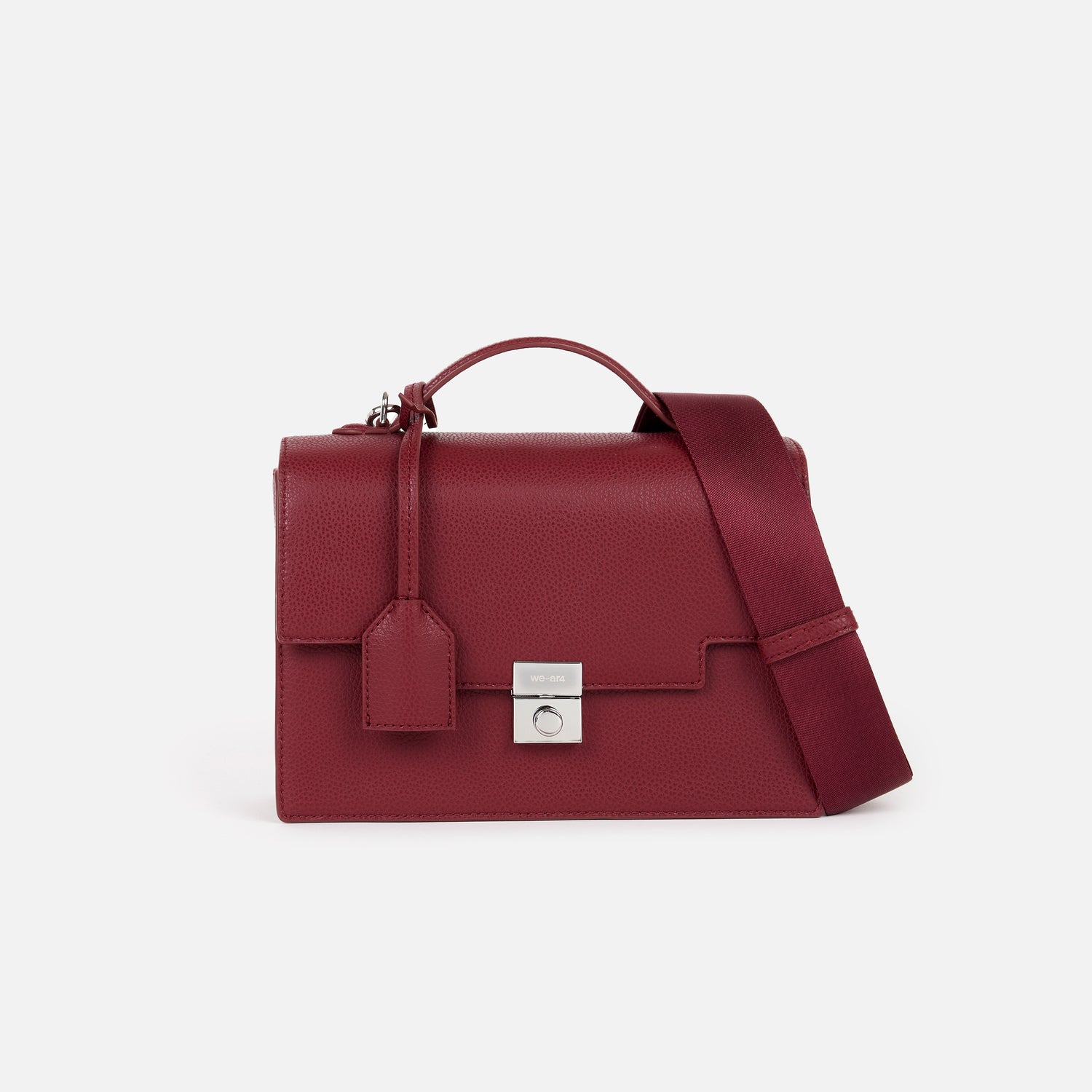 A modern interpretation of the utilitarian glamour trunk, the Retro Trunk bag is structured in shape with a sleek, engraved push lock closure and webbed crossbody strap.