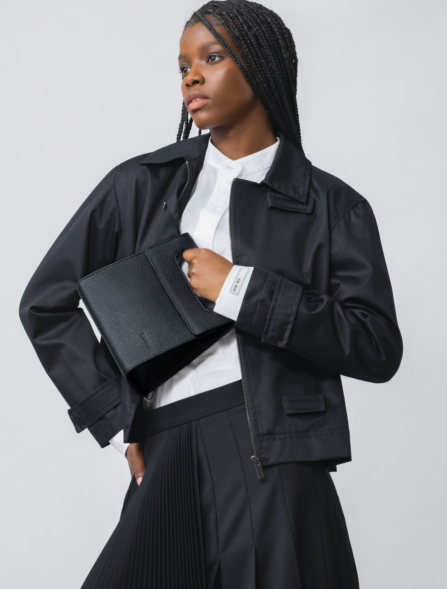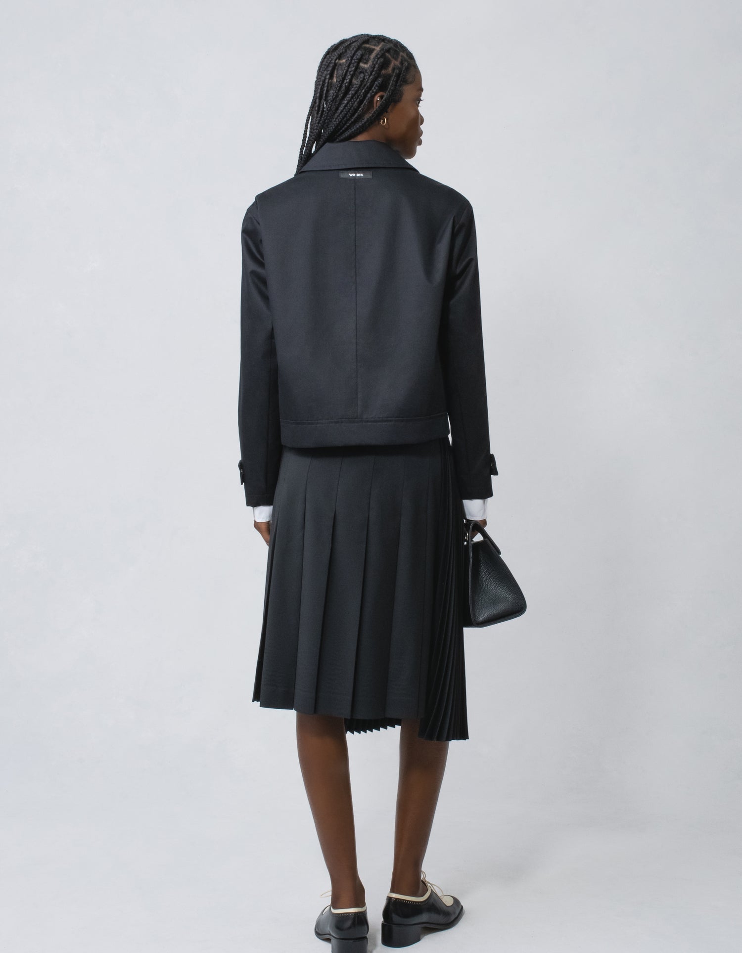 - Asymmetric knife pleat with overlay at top panel