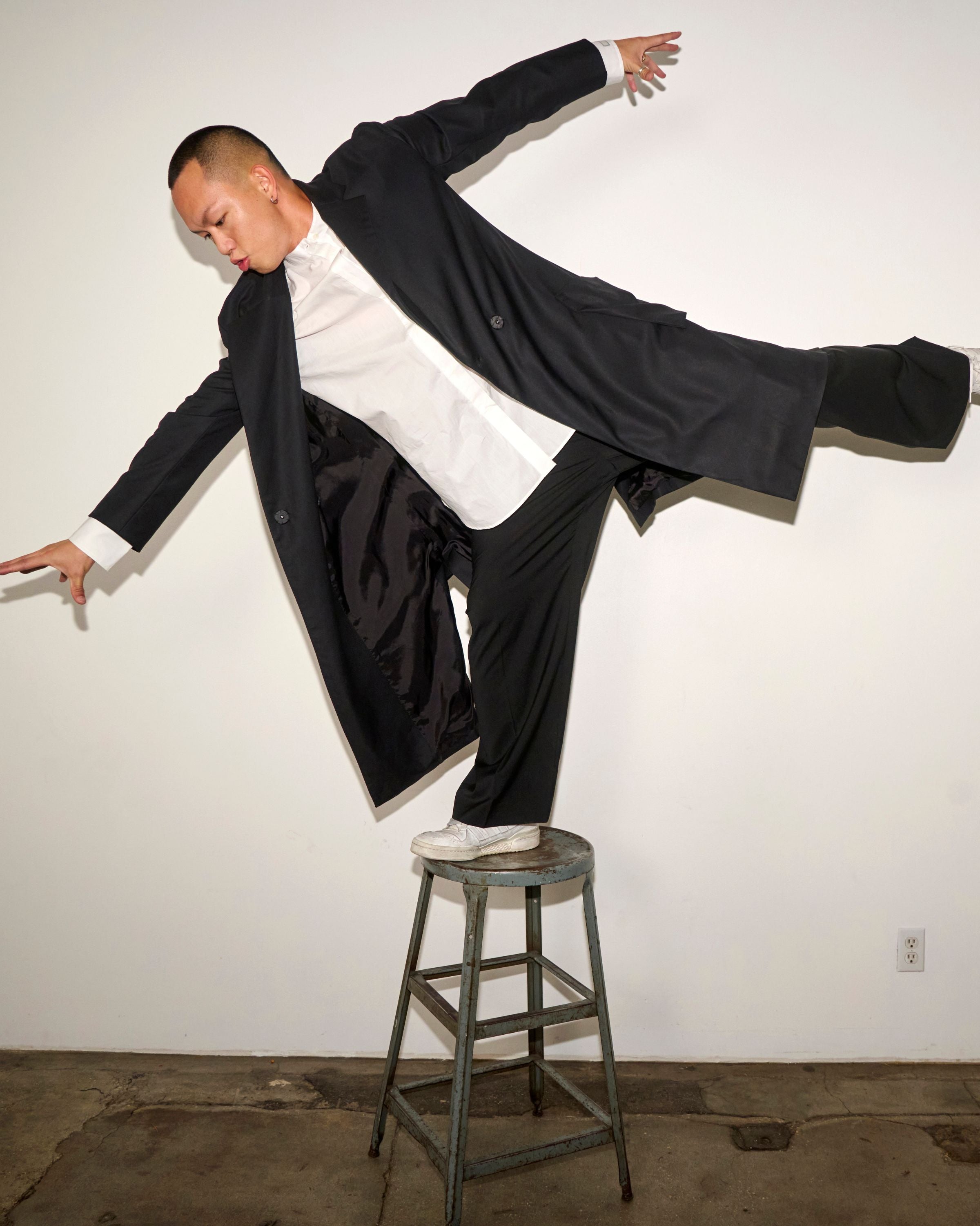 The Collarless Shirt is a modern essential. With an oversized fit, this crisp cotton shirt features mother-of-pearl buttons and a a WE-AR4 polished label on the left cuff.