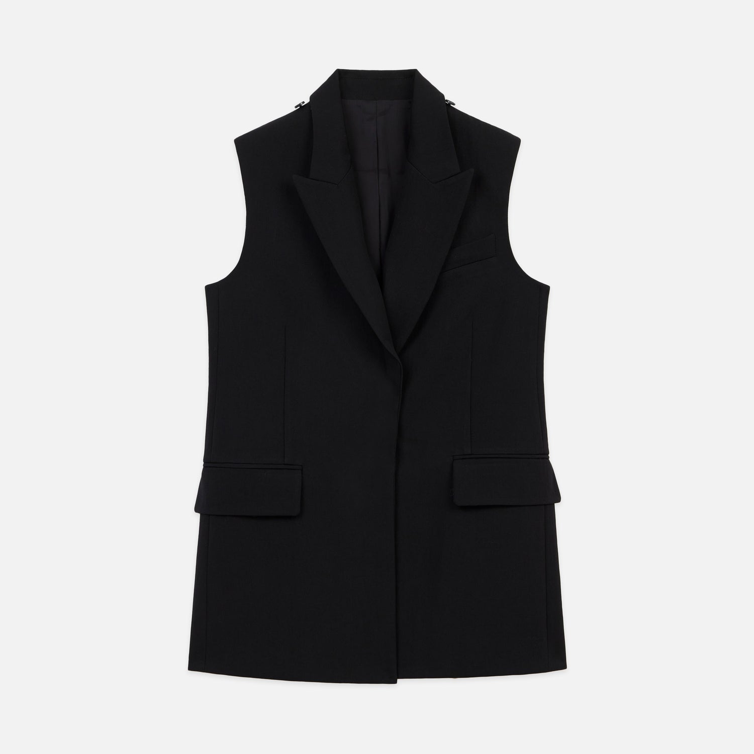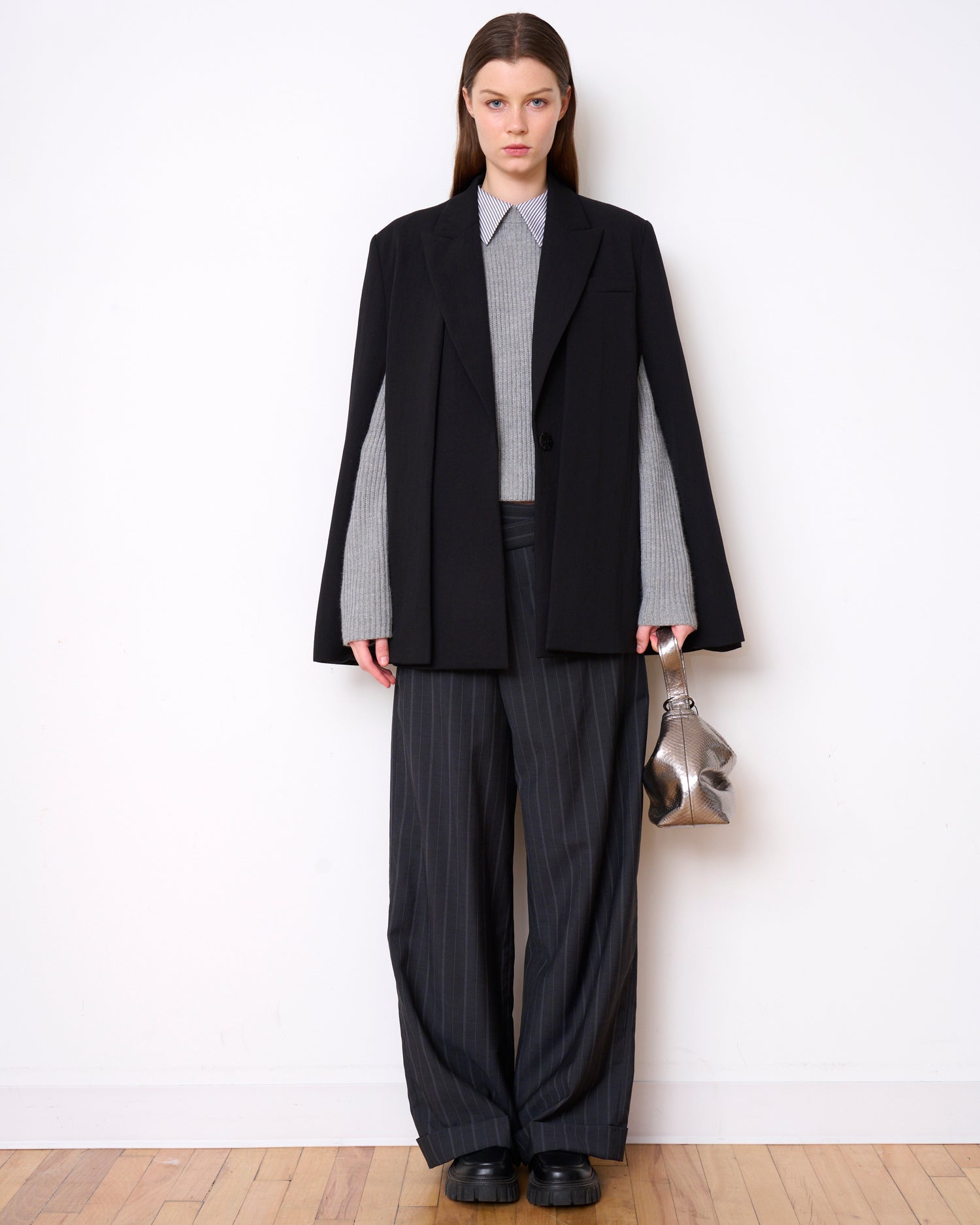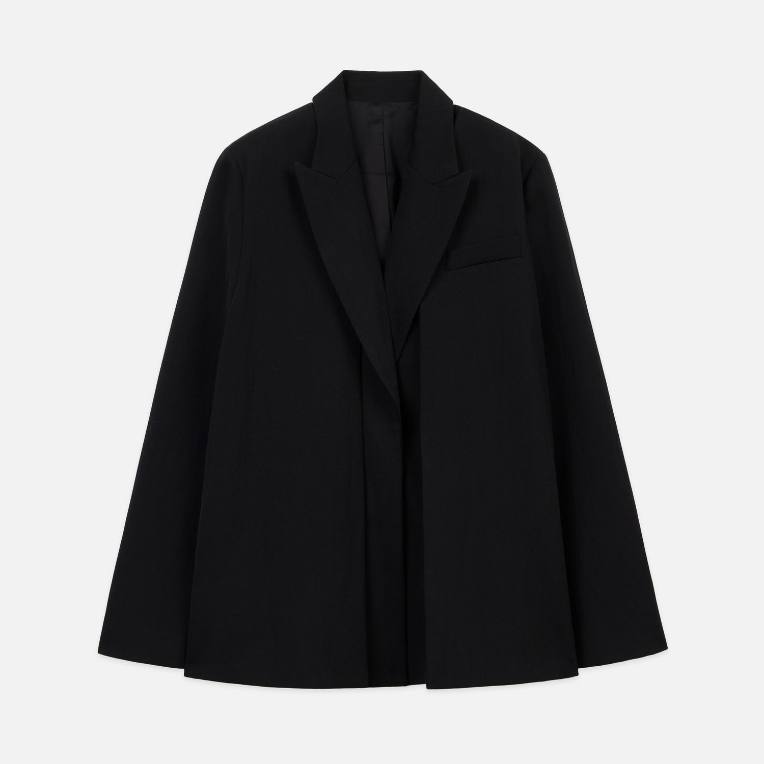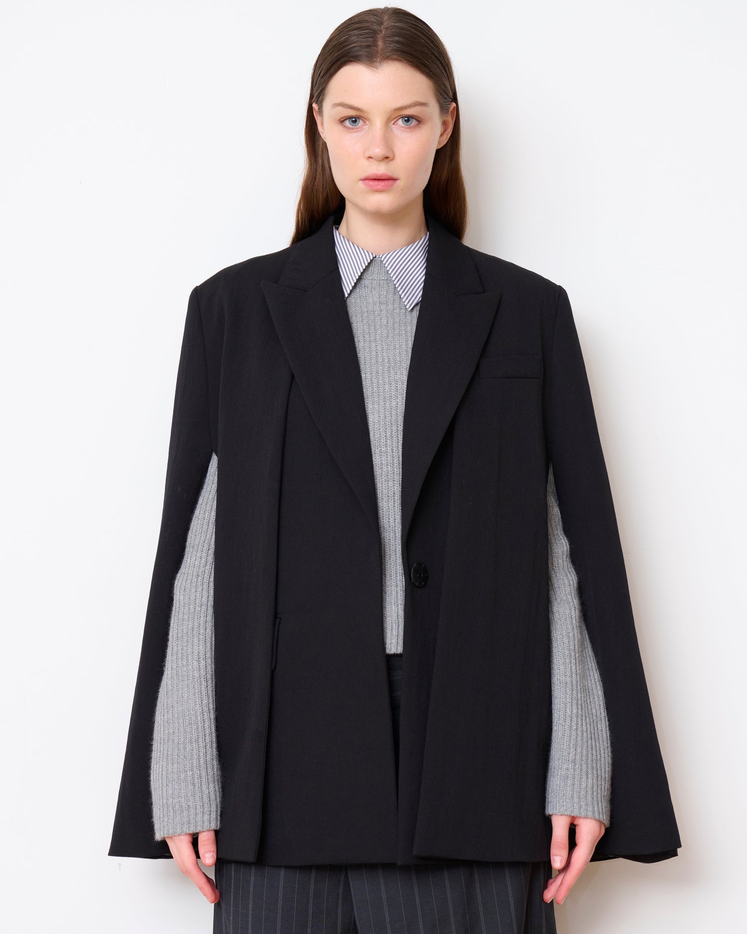 The Avenue Cape is sophisticated and a bit indulgent, adding instant punctuation to any look. This blazer-like cape is a versatile statement piece that is anchored in refined, classic tailoring. Designed with a removable outer shell, it can be worn two ways — as a cape or a vest.