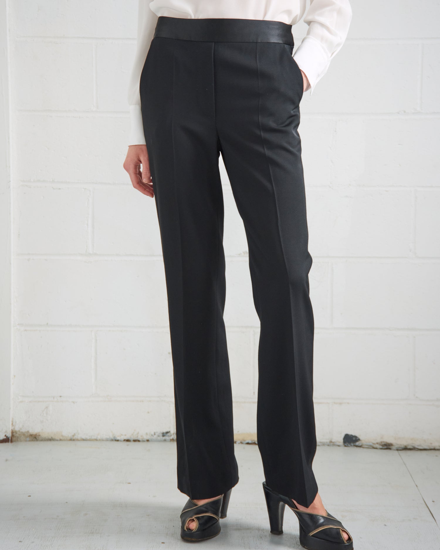 The Bianca Trouser channels the androgynous glamour of the 1970s with its high-waisted, straight leg fit and satin waistband. Wear it with the matching Bianca Blazer for a sensual suit or a T-shirt for the perfect day look.