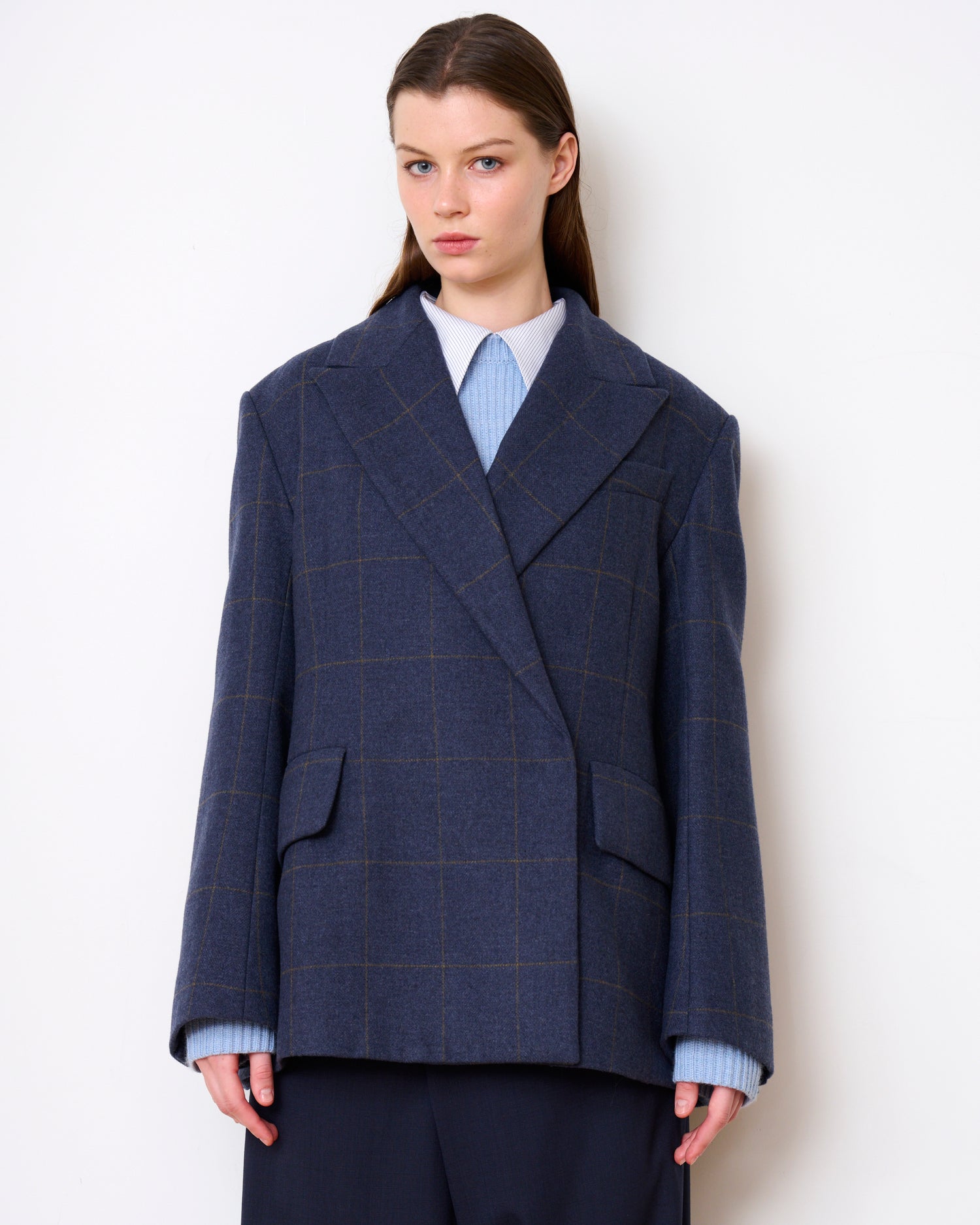 The Greenwich Coat reimagines a double-breasted tailored overcoat with its exaggerated peaked lapel, oversized fit and full swing back. Crafted in luxurious heavy wool, this blazer-like coat defines elegant utilitarianism and is the perfect piece for a walk thru the West Village or a night out.