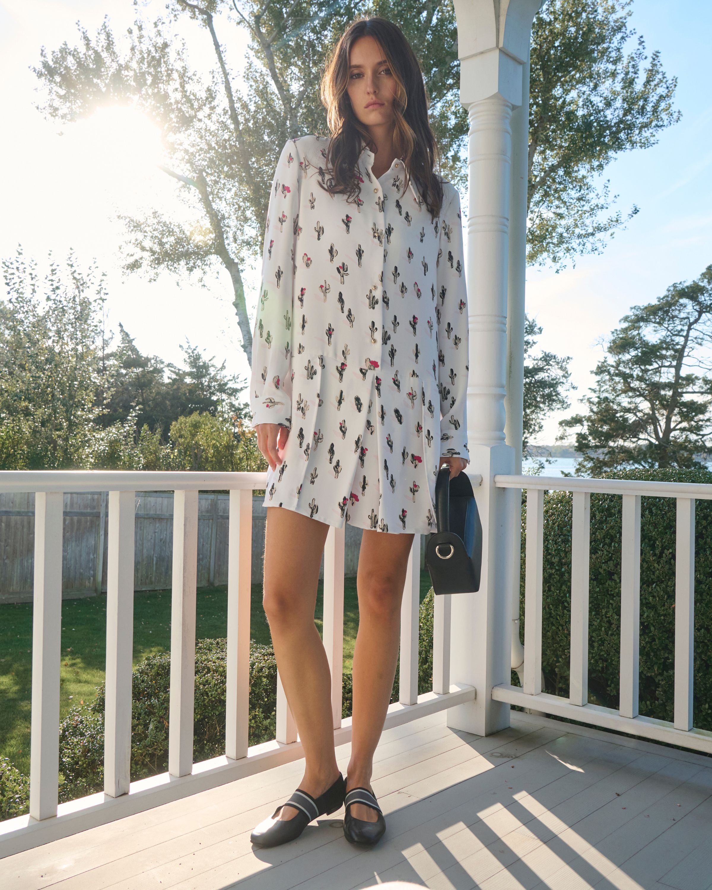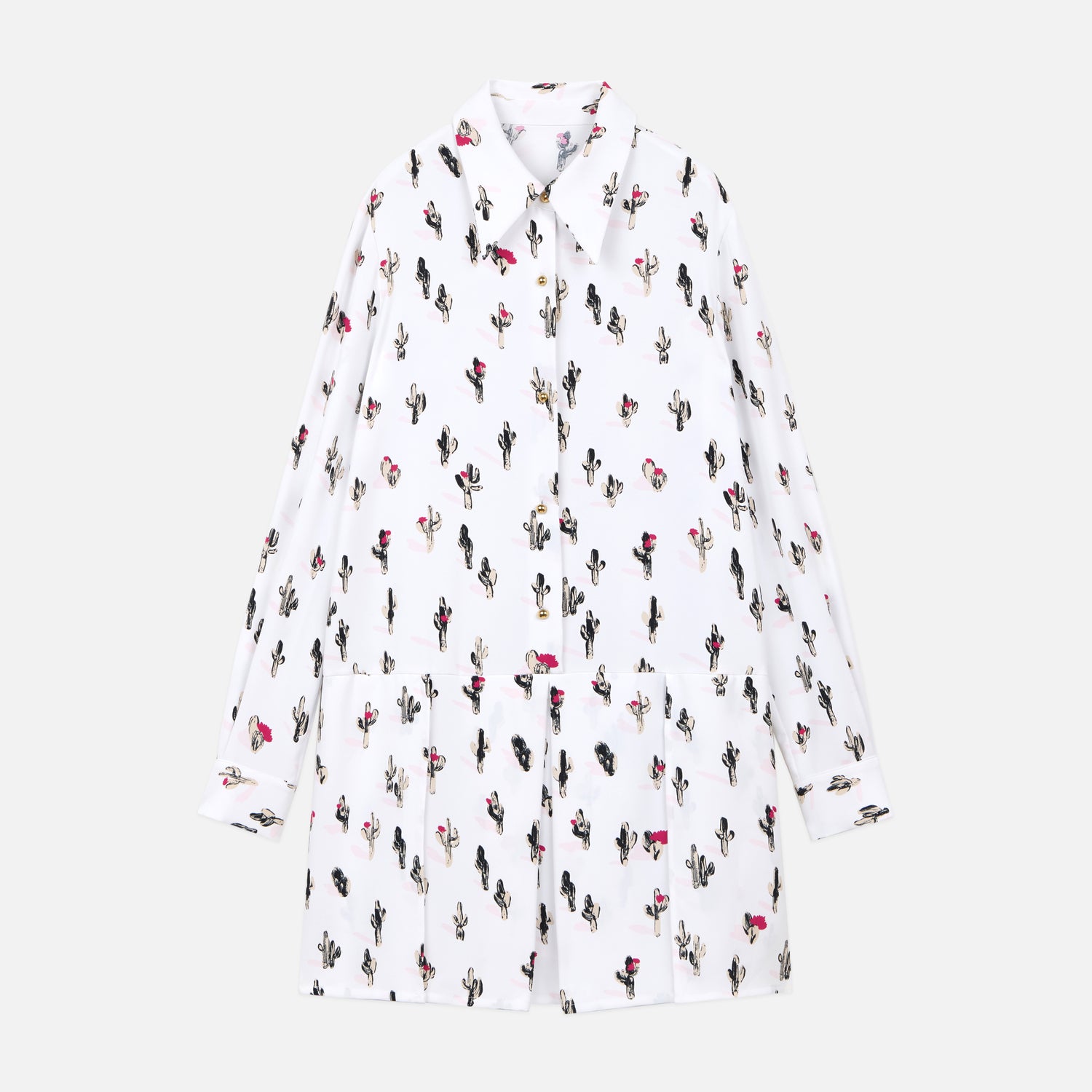 This 70s-inspired shirtdress is reimagined and infused with elements of modern femininity. Seductively soft, the Moonlight dress is crafted from textured polyester and coupled with bold gold ball buttons and a fluttery box pleat skirt for a touch of elegance.