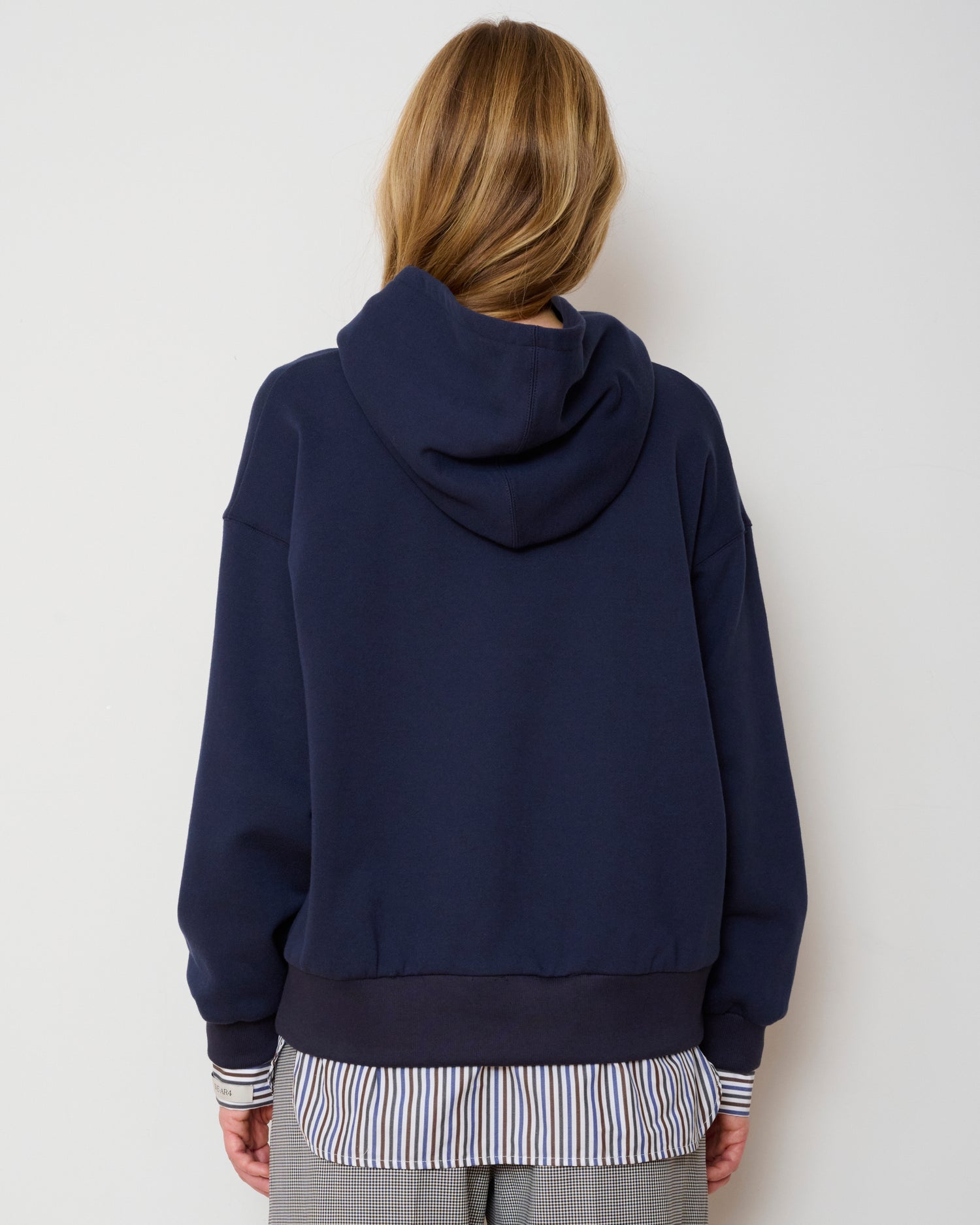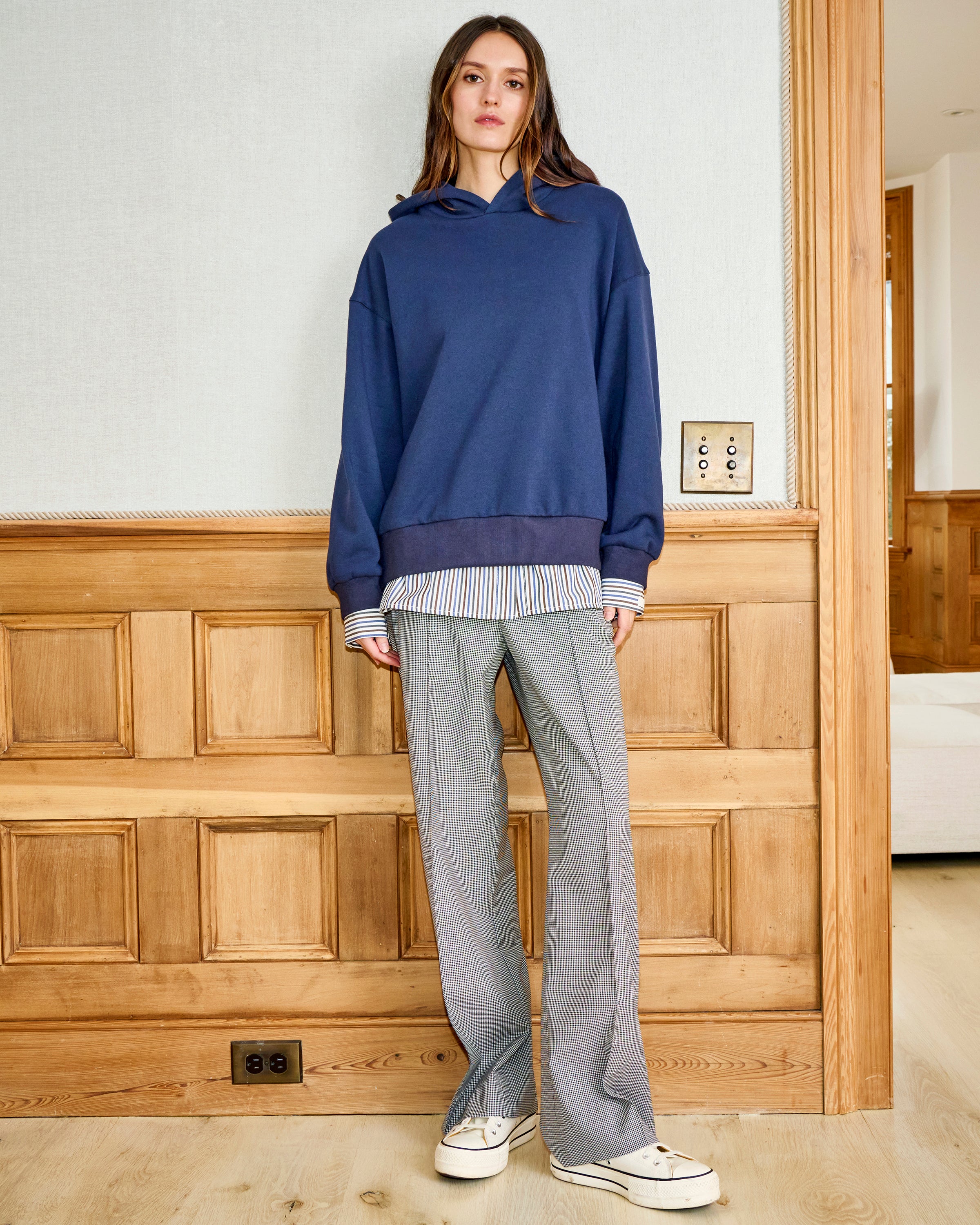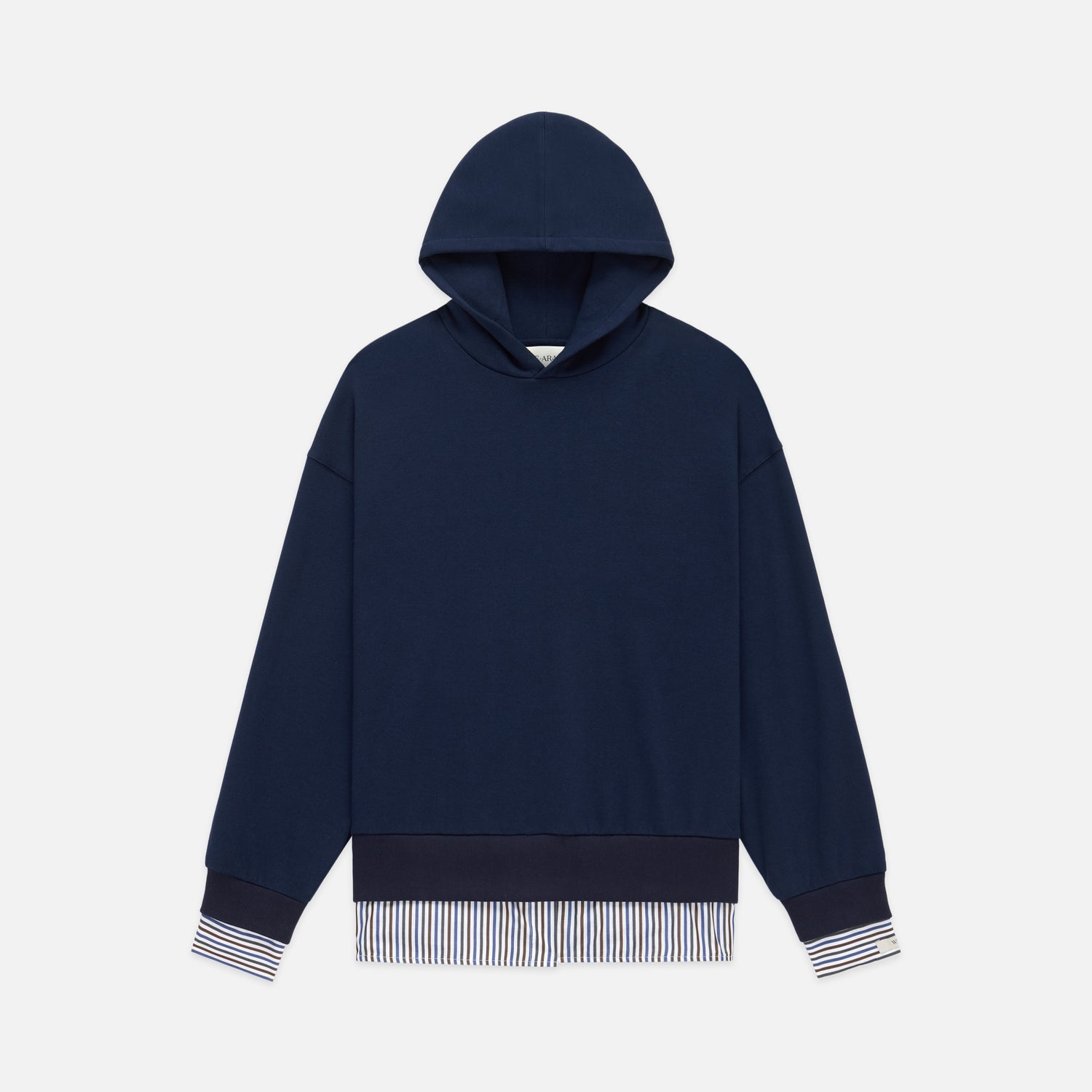 The classic hoodie is reimagined and infused with elements of the iconic prep. Comfort meets collegiate with the Smart Hoodie, as this casual oversized terry sweatshirt perfectly balances the unexpected button-down shirting.